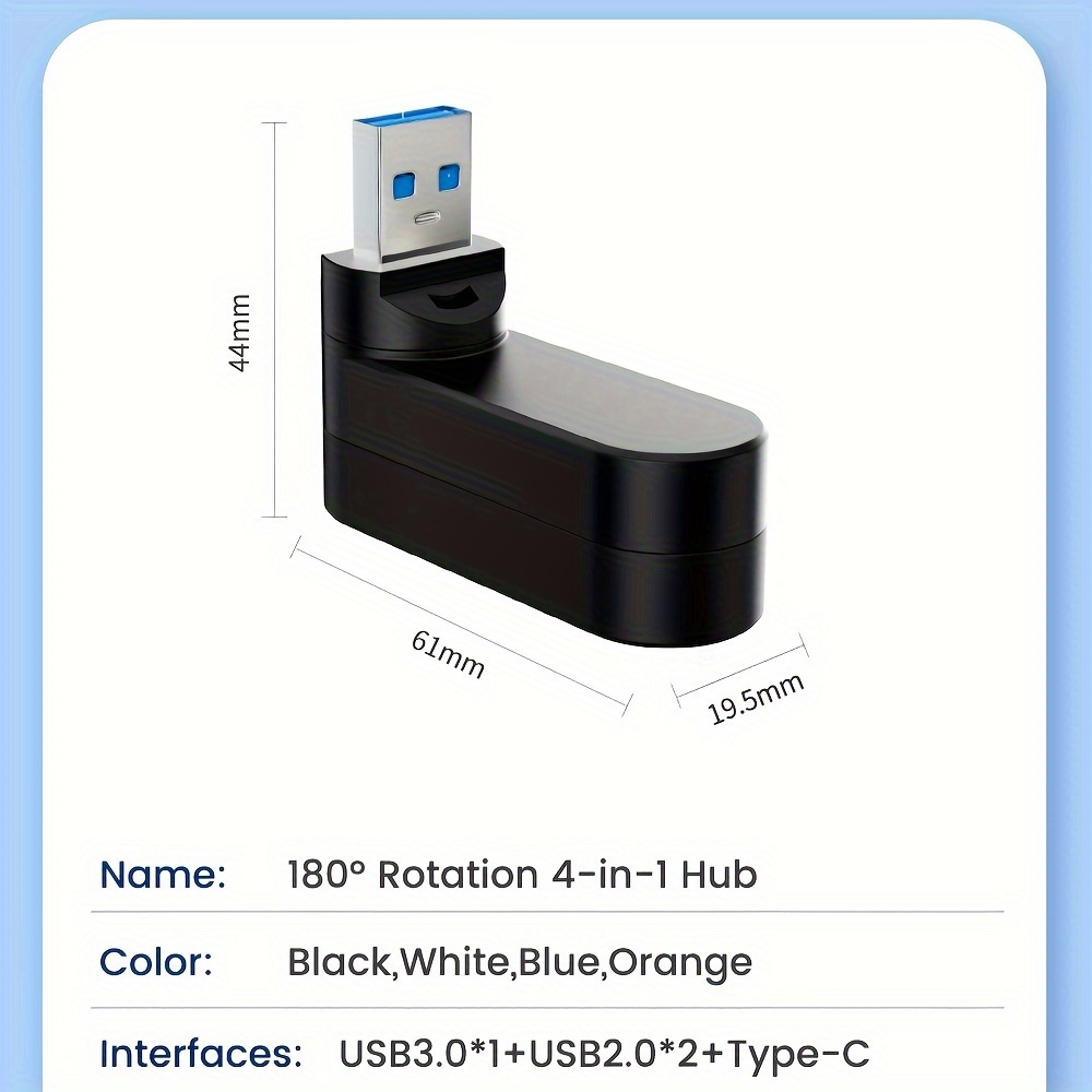 In an increasingly cluttered digital workspace, the traditional fixed-position hub often creates more problems than it solves. Cables can become strained, neighboring ports are frequently blocked, and mobile devices are left at awkward angles. The ELITE 4-in-1 Rotatable USB Adapter is a revolutionary solution designed to overcome these physical limitations. Featuring a precision-engineered 180-degree swivel mechanism, this adapter provides a dynamic connectivity bridge that adapts to your environment rather than forcing you to adapt to it.