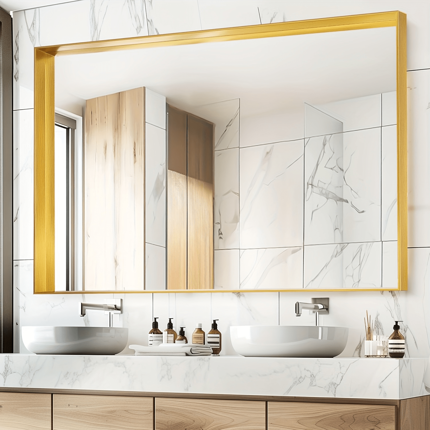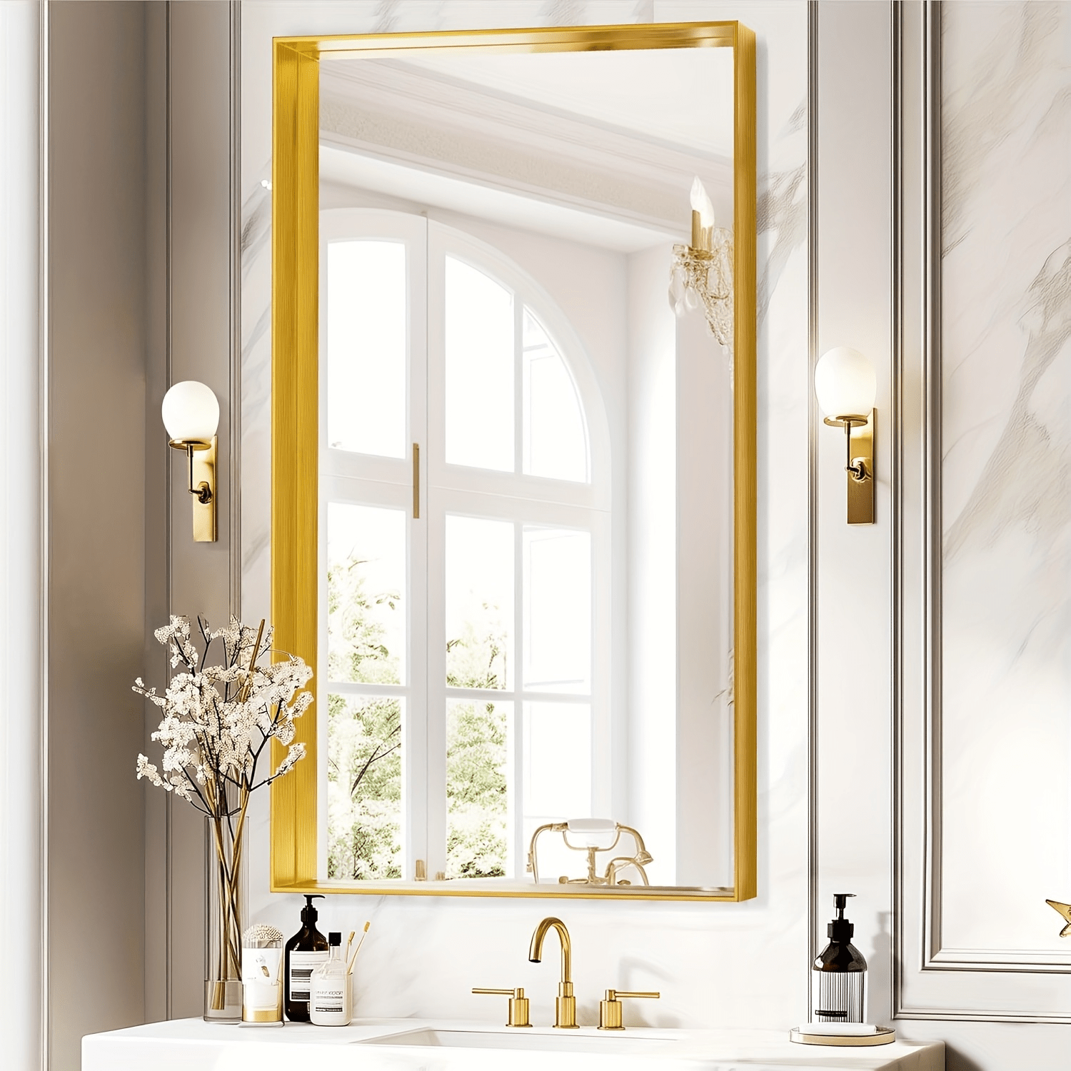 Frame Mirror for Bathroom, Multiple Sizes Metal Framed Bathrrom for Wall, Matte Black/Golden/Silvery Bathroom Vanity Mirror Farmhouse, Anti-Rust, Rectangle Square Corner Metal Frame Modern Horizontal/Vertical
