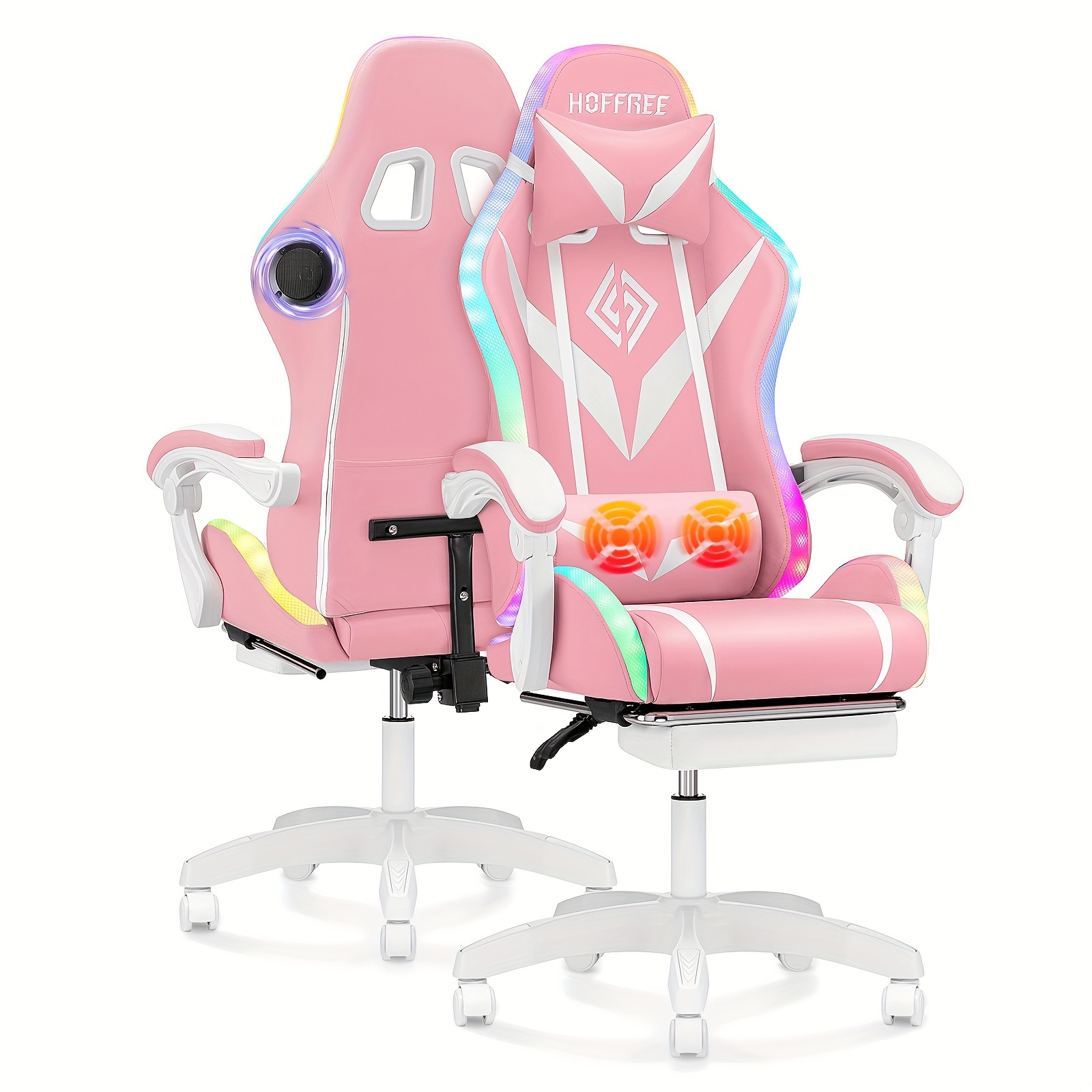 Feature: 【VIBRANT RGB LED LIGHTS】Equipped with LED lights that flash on the back and around the seat, you can effortlessly change various lighting modes and brightness using a remote, enhancing the atmosphere in your gaming space while you play. 【Wireless AUDIO SPEAKER】Includes two built-in speakers for immersive stereo sound. Can connect to smartphones and laptops.