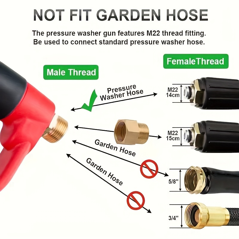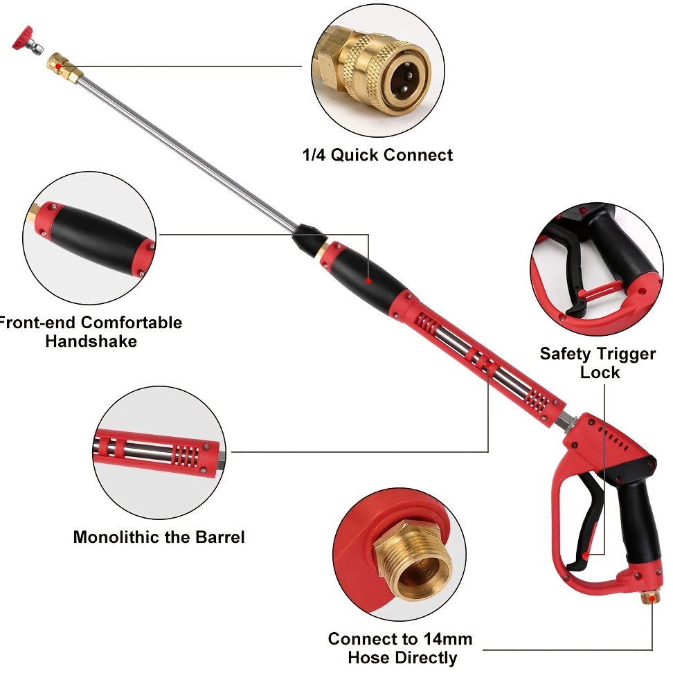 Efficiency in a professional setting requires both range and adaptability. This High-Pressure Cleaning Gun features a 39-inch extended configuration, achieved through a high-grade replacement wand. This length is vital for maintaining a safe standoff distance during high-pressure operations and for accessing hard-to-reach areas, such as rooftops, vehicle undercarriages, or tall siding, without the need for precarious ladders. The unit utilizes an industry-standard M22 connector, ensuring seamless integration with most commercial-grade pressure washer hoses and systems.