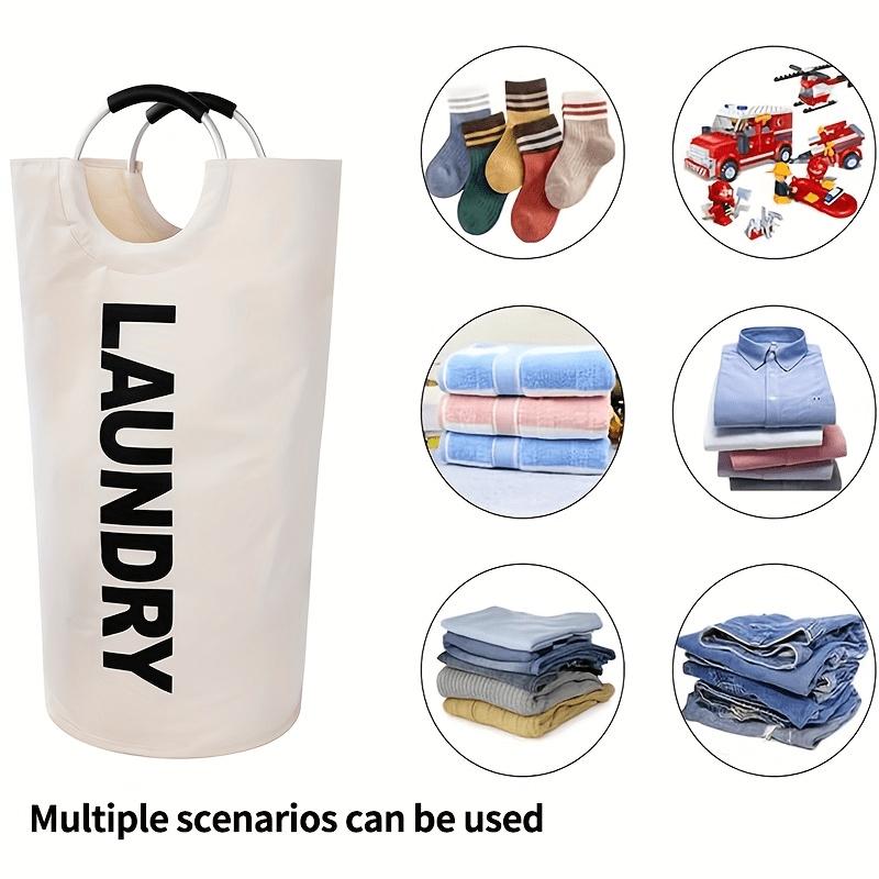 Large Waterproof Laundry Hamper with Foldable Size – Independent High Hanger, Soft Grip AI Handle, Durable Polyester Material, Ideal for Home & Travel, Travel Laundry Solution|Modern Laundry Accessory|Durable Handle, Laundry Baskets