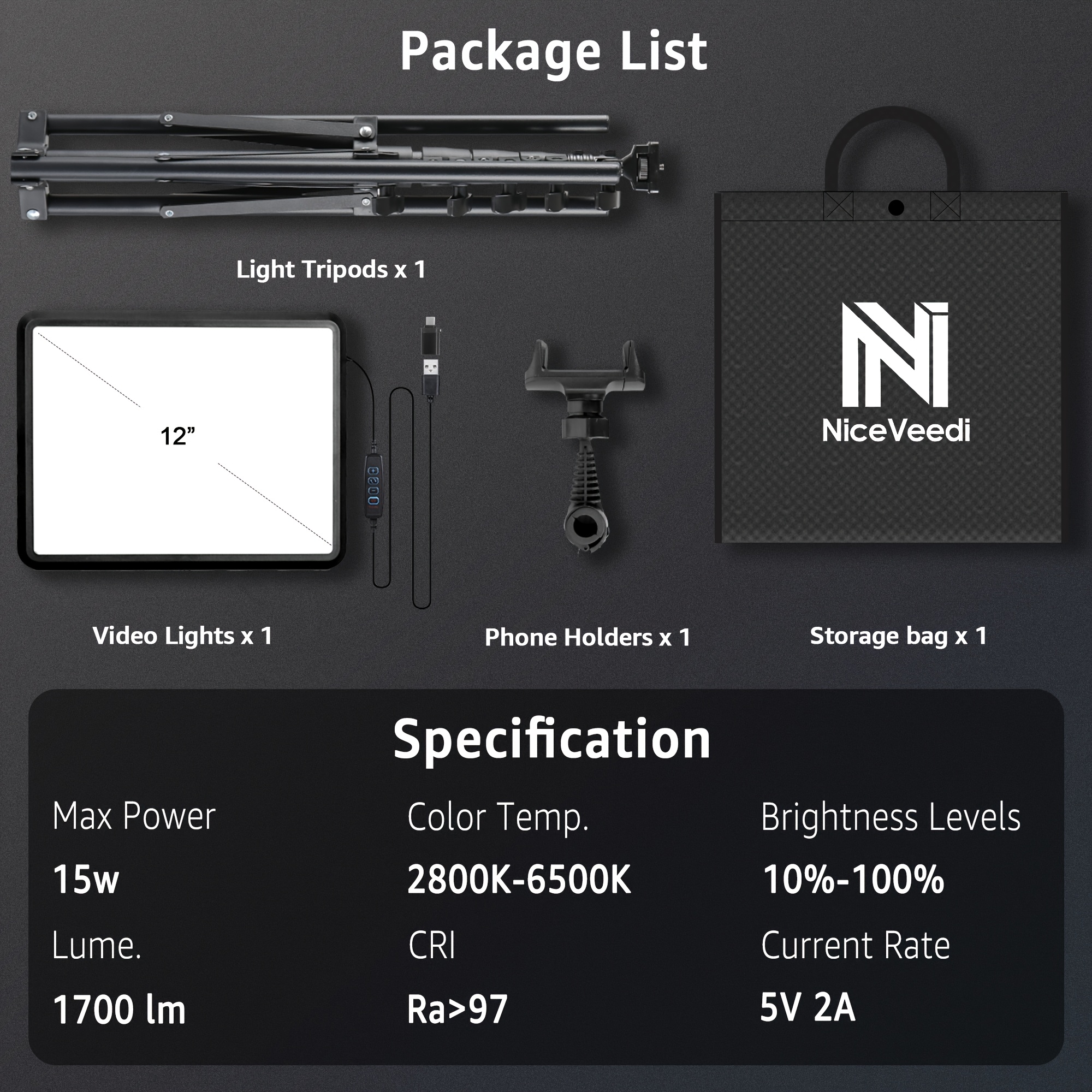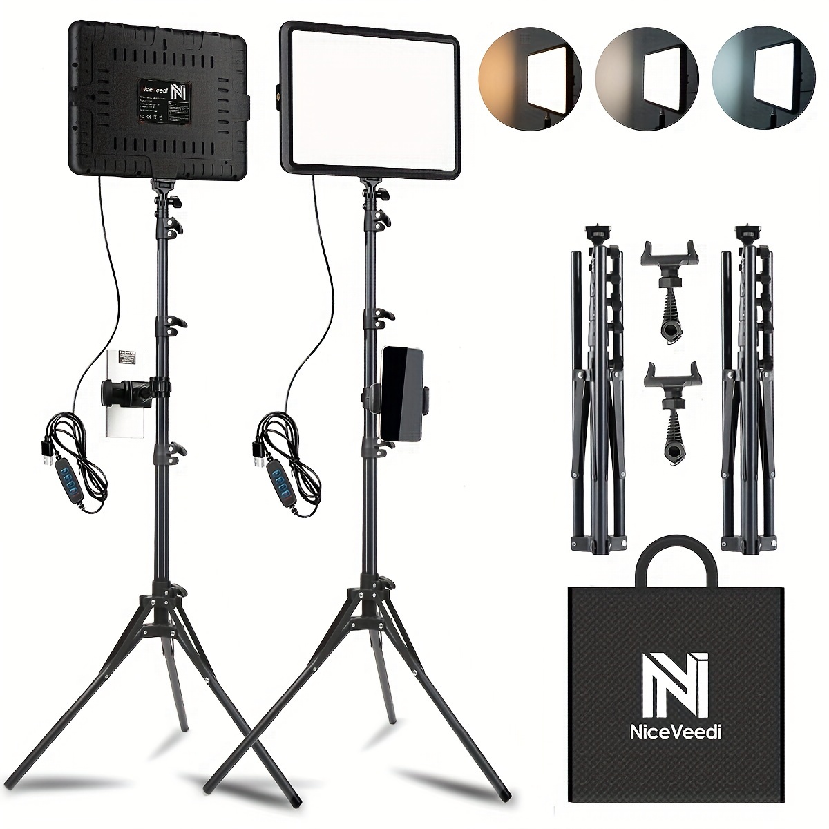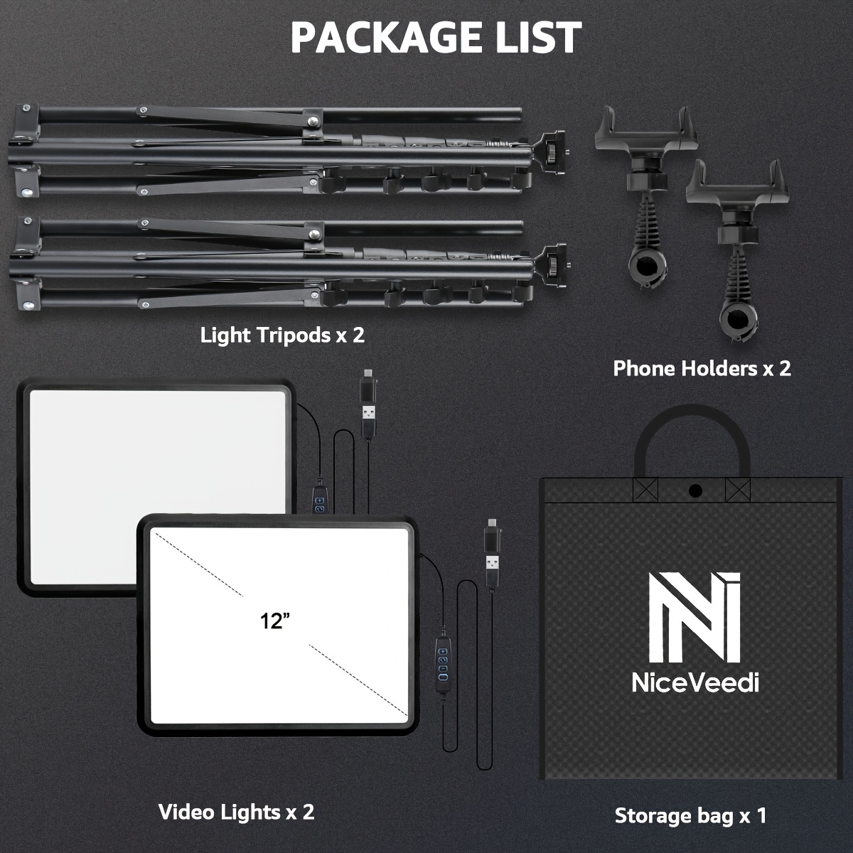 【Package List & Customer Service】There Will Be 2 LED Studio Light Panels With Cable. Adjustable Tripod Stand For Each Light Panel, 1 User Manual, 1 Storage Bag, 2 USB-C Adapters. We Offer 1 Year Warranty, If There Is Any Problem, Please Feel Free To Let Us Know.
