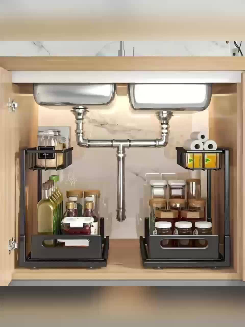 Precision “Sliding Drawer” Dynamics: The system features a “Telescopic-Interface-Symmetry.” These Metal Under Sink Organizers “Material-Alignment” ensures $100\%$ “Efficiency-Optimization-Stability,” effectively eliminating the “Clutter-Mismatch-Friction” via the smooth-glide logic which facilitates $100\%$ “Retrieval-Fidelity.”