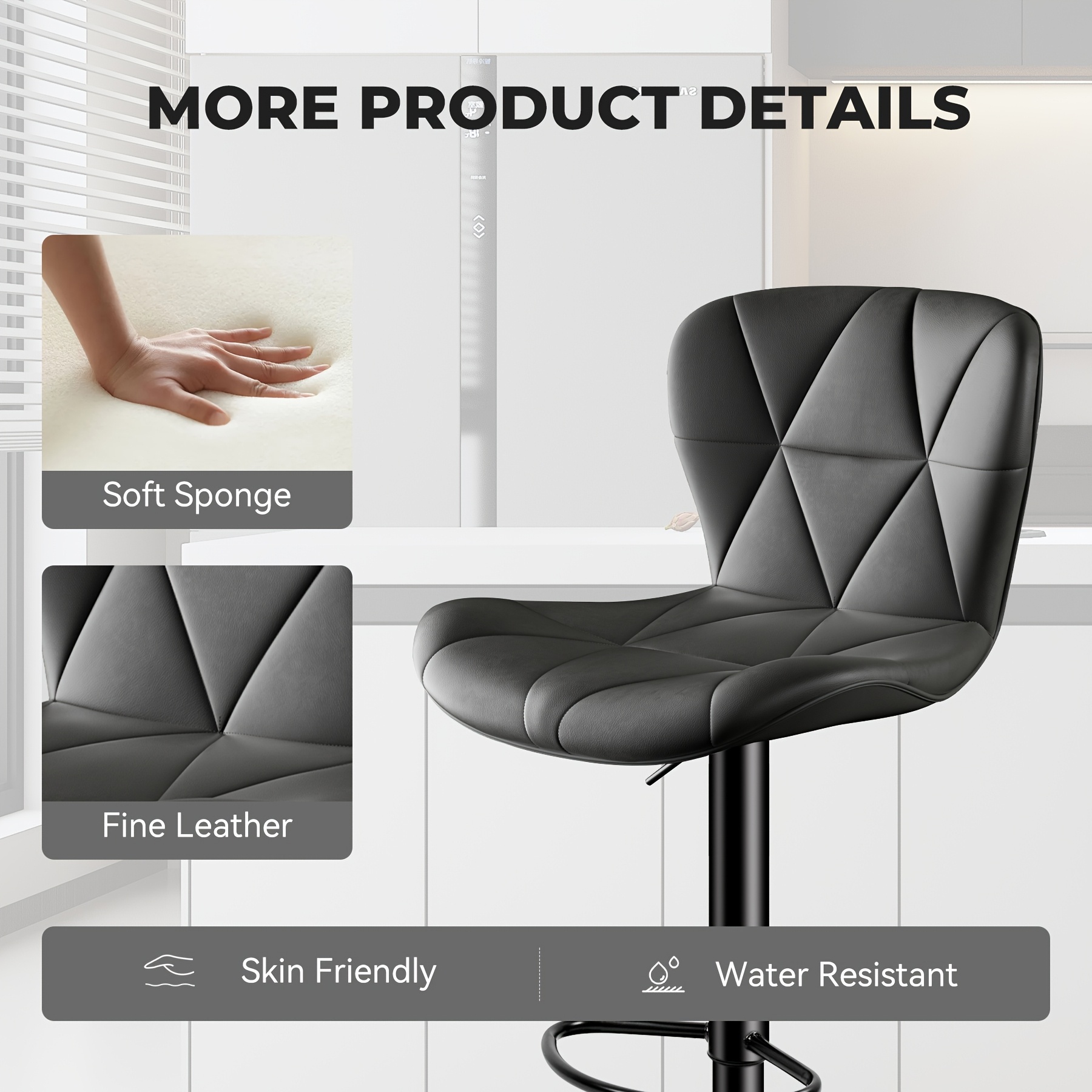 High-Density “Square-Cushion” Dynamics: The Modern Bar Stool features a Thickened Seat Cushion. This “Volumetric-Loft” ensures $100\%$ “Pelvic-Support-Inertia,” effectively eliminating the “Sitting-Fatigue” friction common during extended dining or work sessions.