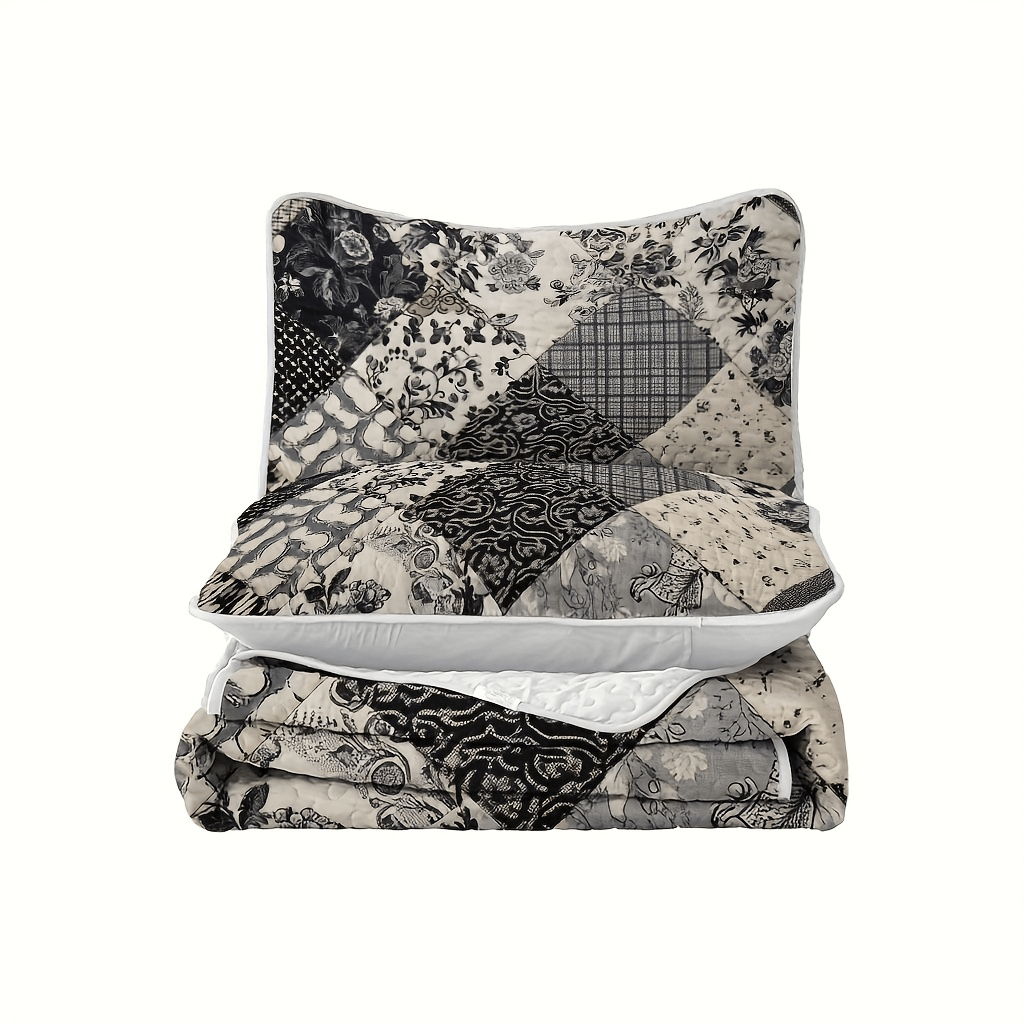 Monochrome Patchwork Pattern Luxury Hotel-Style Quilt Set 1 Quilt +1/2 Pillowcases, Without Fillers Hypoallergenic & Light Beige-Friendly Bedspread with Modern Printed, All Size Bed and All-Seasons Options