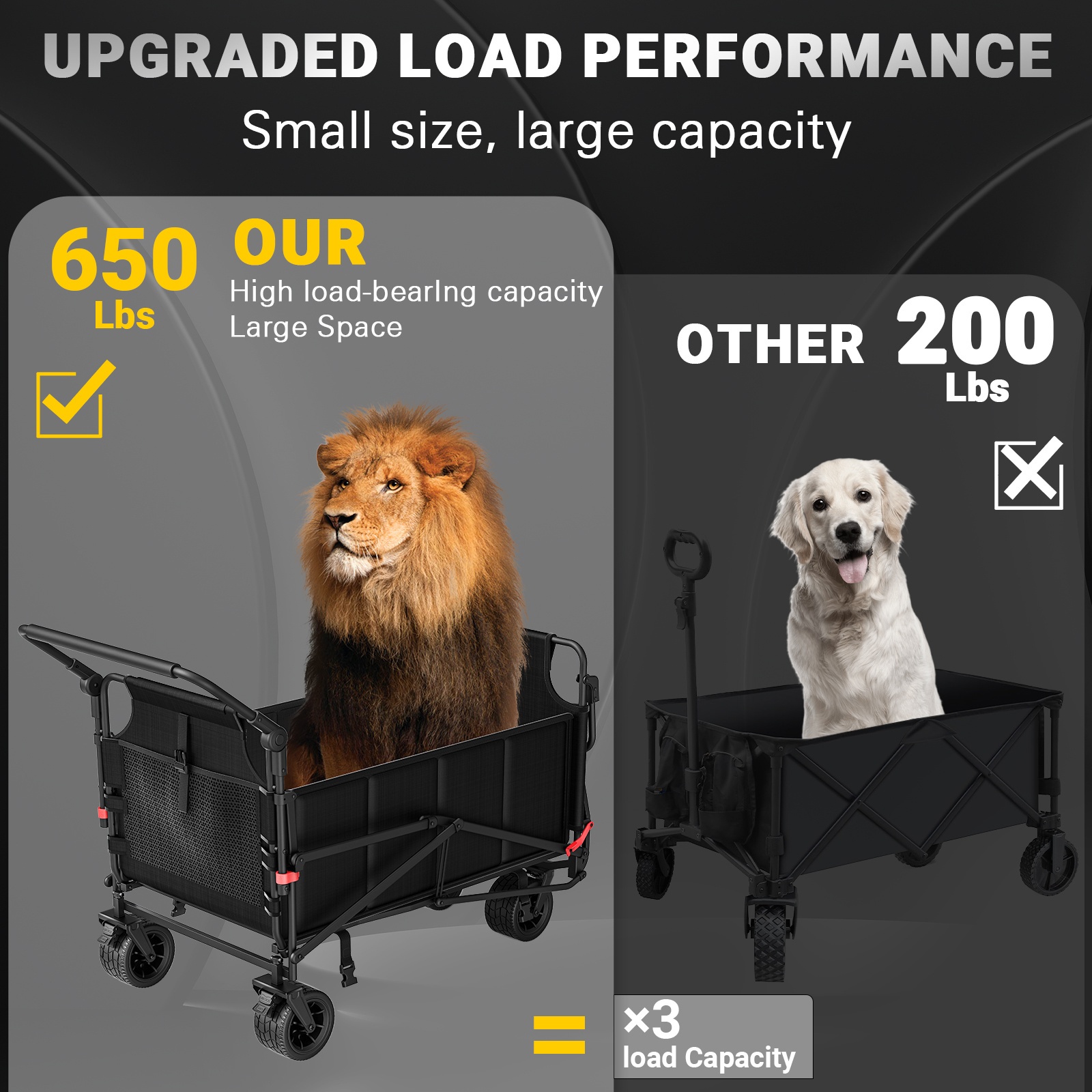 Integrated “650LBS” Matrix: The internal-chassis is meticulously calibrated with a high-tensile steel interface. This “Structural-Inertia” ensures $100\%$ “Load-Alignment-Stability,” effectively neutralizing the “Frame-Deflection-Coefficient” common in non-technical wagons, providing a professional-grade All Terrain Travel standard.