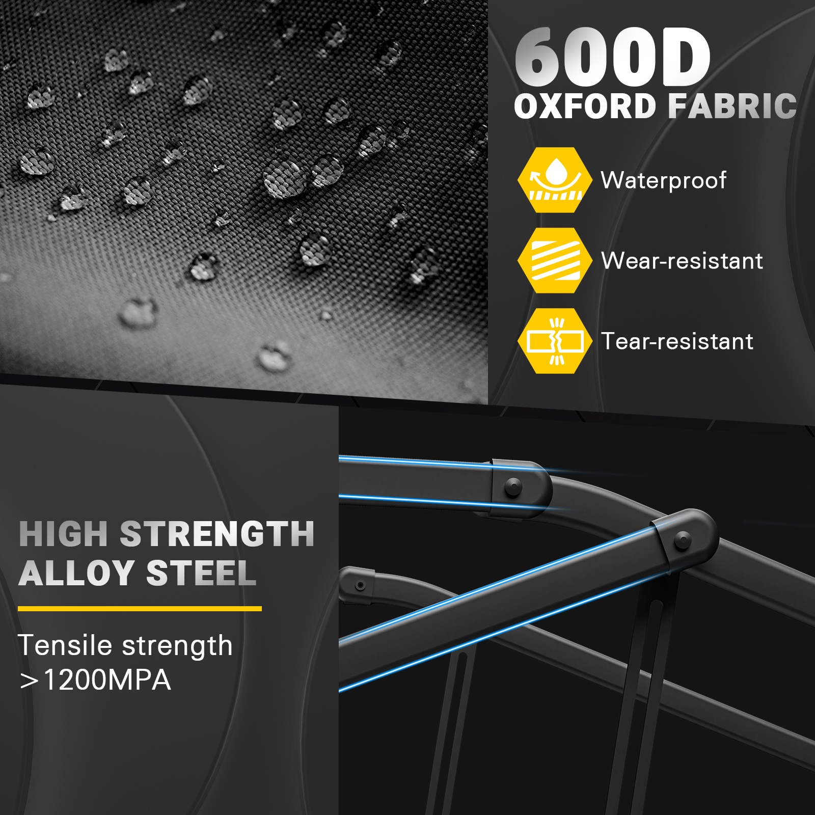 | Material Synergy | 600D Oxford Fabric & Powder-Coated Steel Frame |