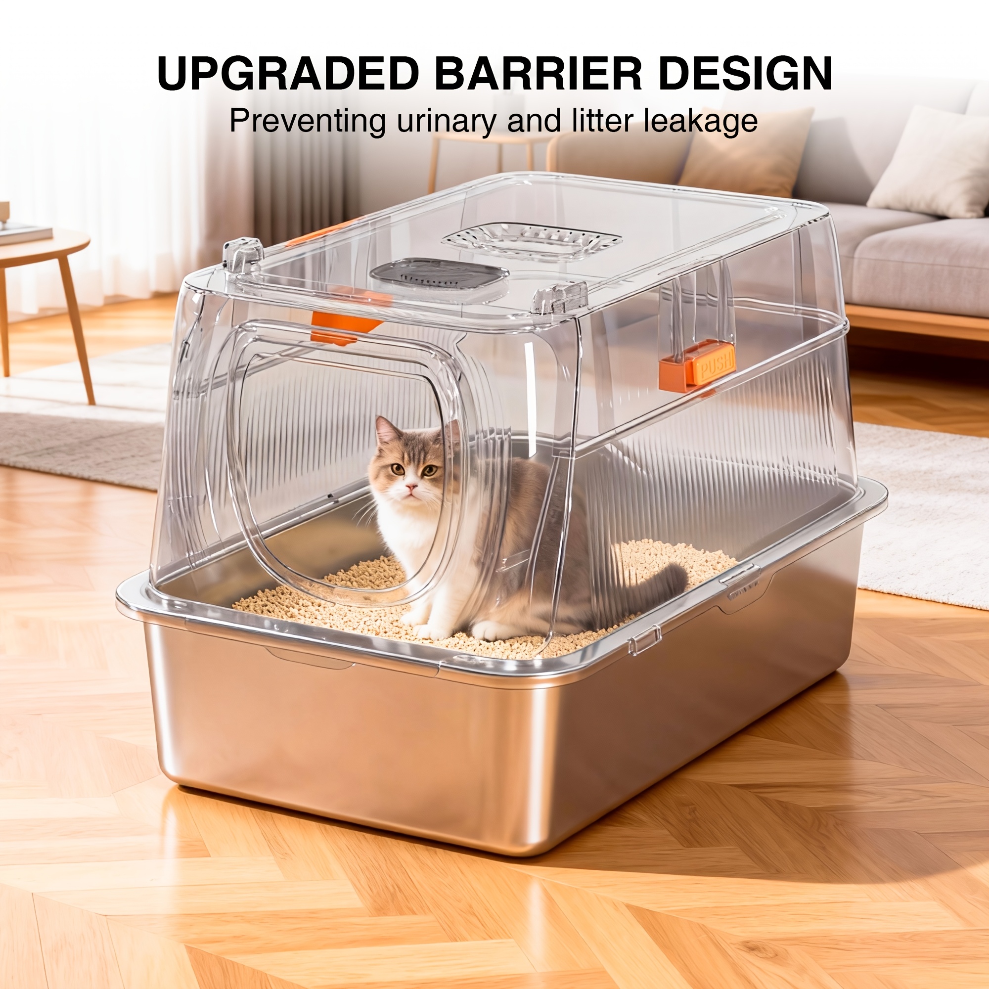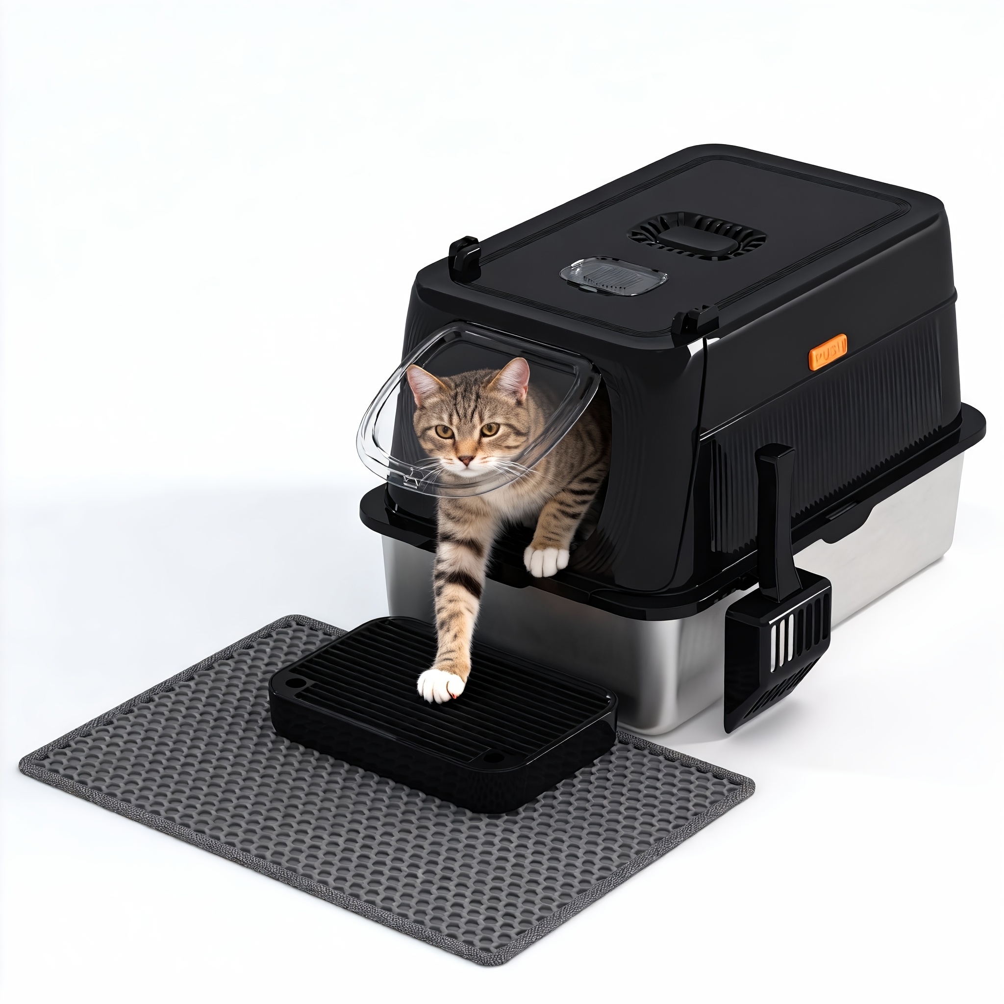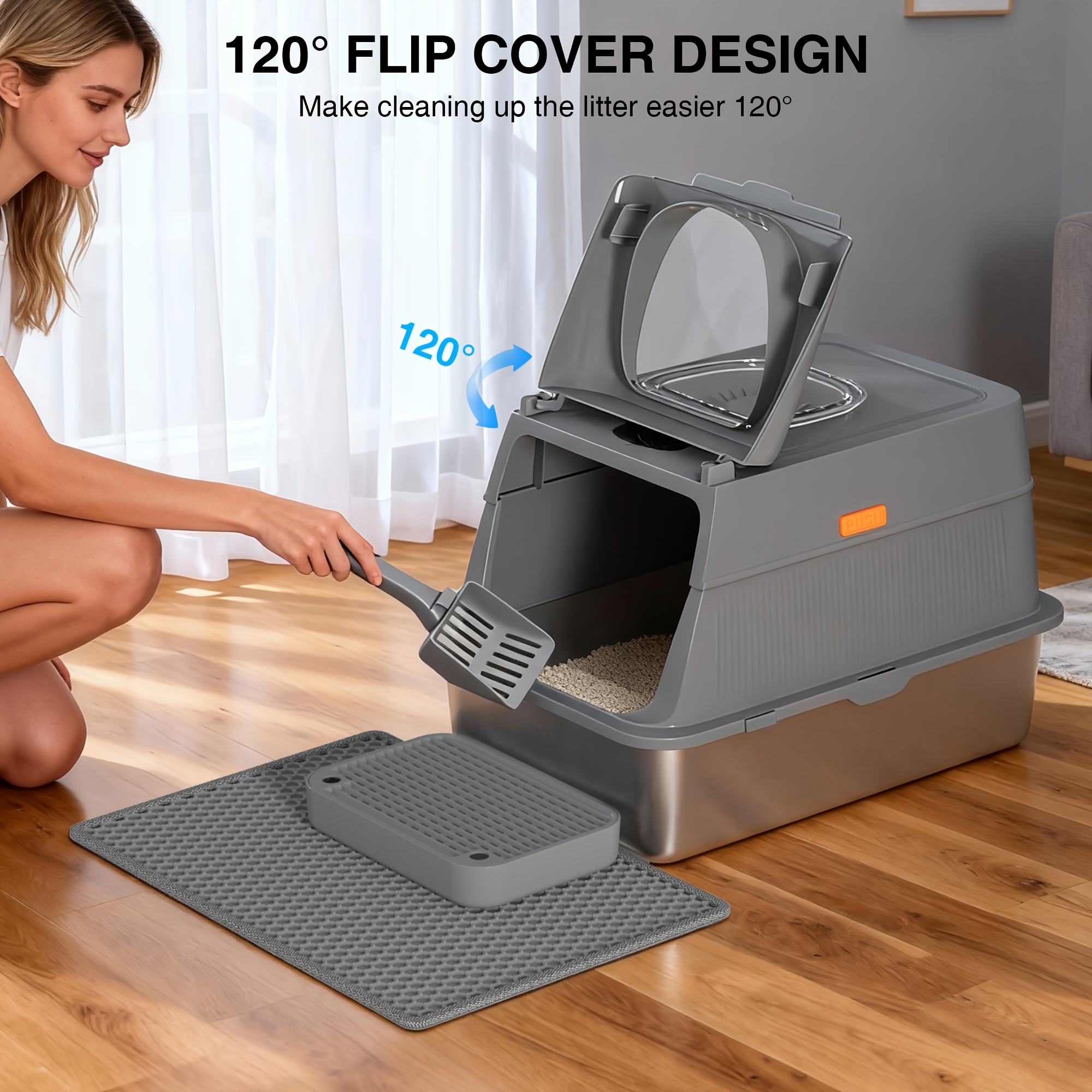 Precision “Collapsible & Lid” Dynamics: The system features a “Modular-Enclosure-Interface.” This Oversized Stainless Steel Cat Litter Box “Material-Alignment” ensures $100\%$ “Operational-Optimization-Stability,” effectively eliminating the “Litter-Scatter-Mismatch-Friction” via the Front Flap Door and Lid logic which facilitates $100\%$ “Containment-Fidelity.”
