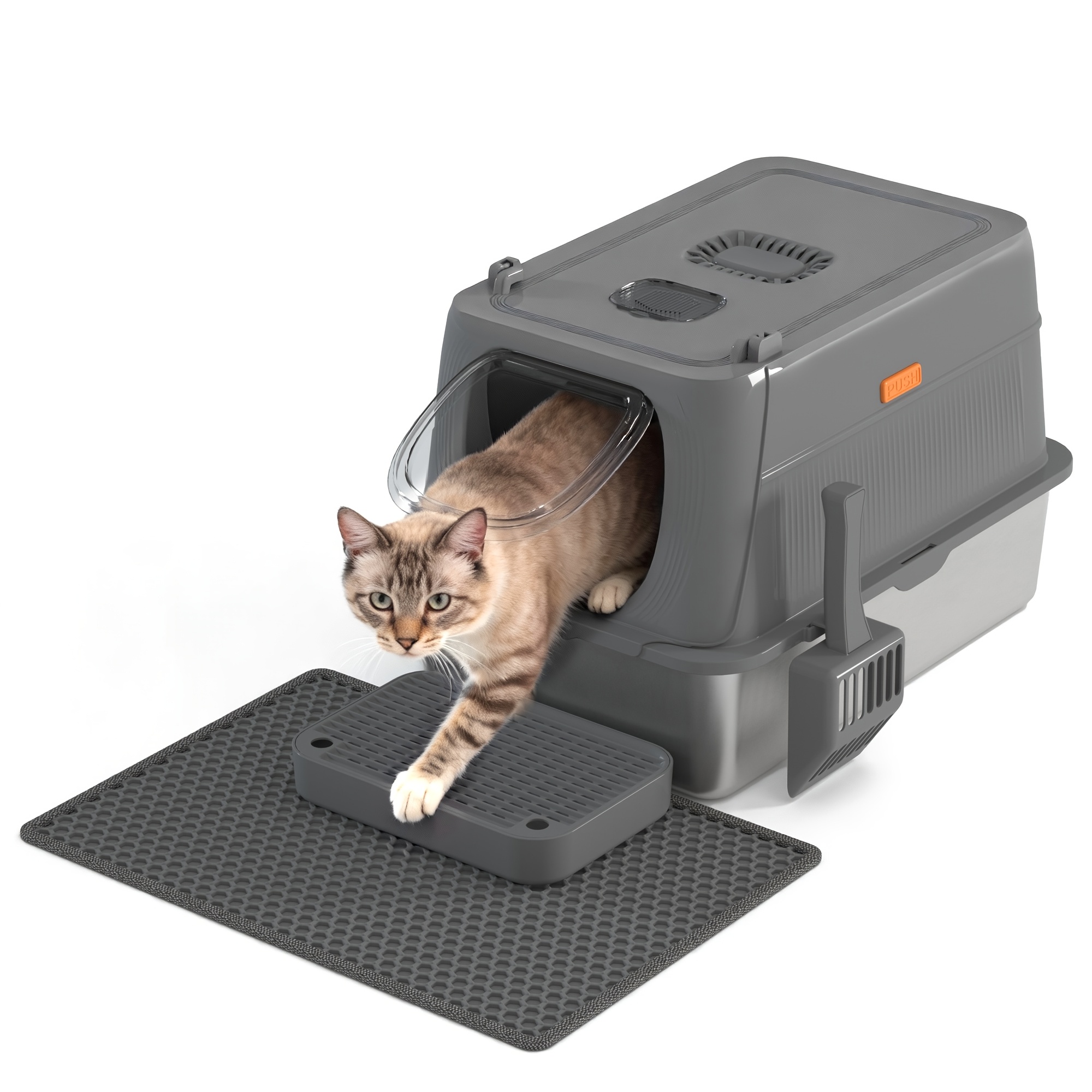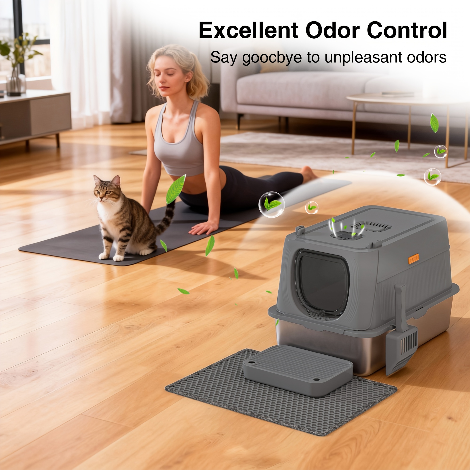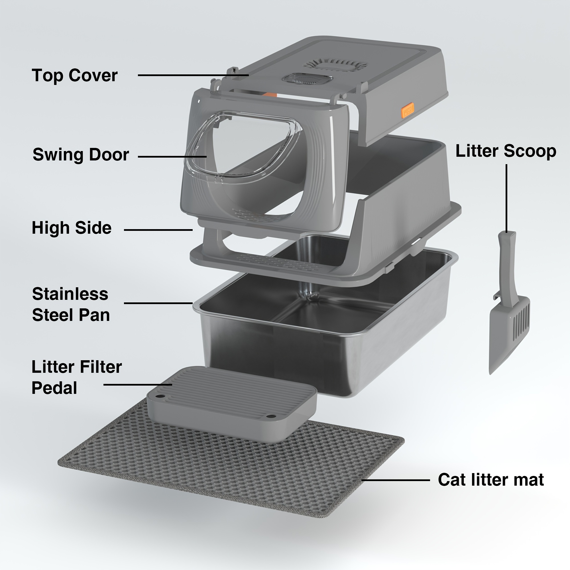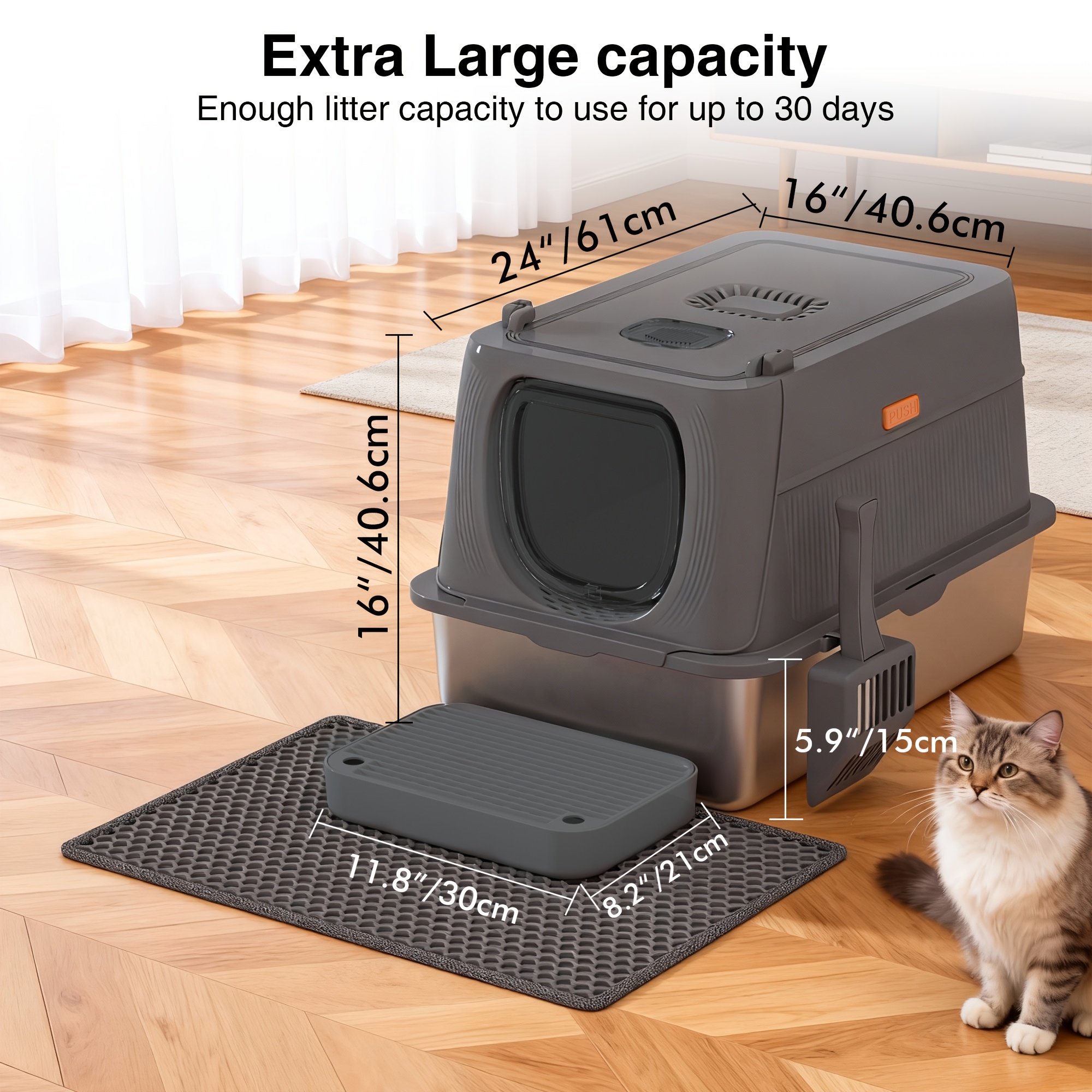 Precision “Collapsible & Lid” Dynamics: The system features a “Modular-Enclosure-Interface.” This Oversized Stainless Steel Cat Litter Box “Material-Alignment” ensures $100\%$ “Operational-Optimization-Stability,” effectively eliminating the “Litter-Scatter-Mismatch-Friction” via the Front Flap Door and Lid logic which facilitates $100\%$ “Containment-Fidelity.”