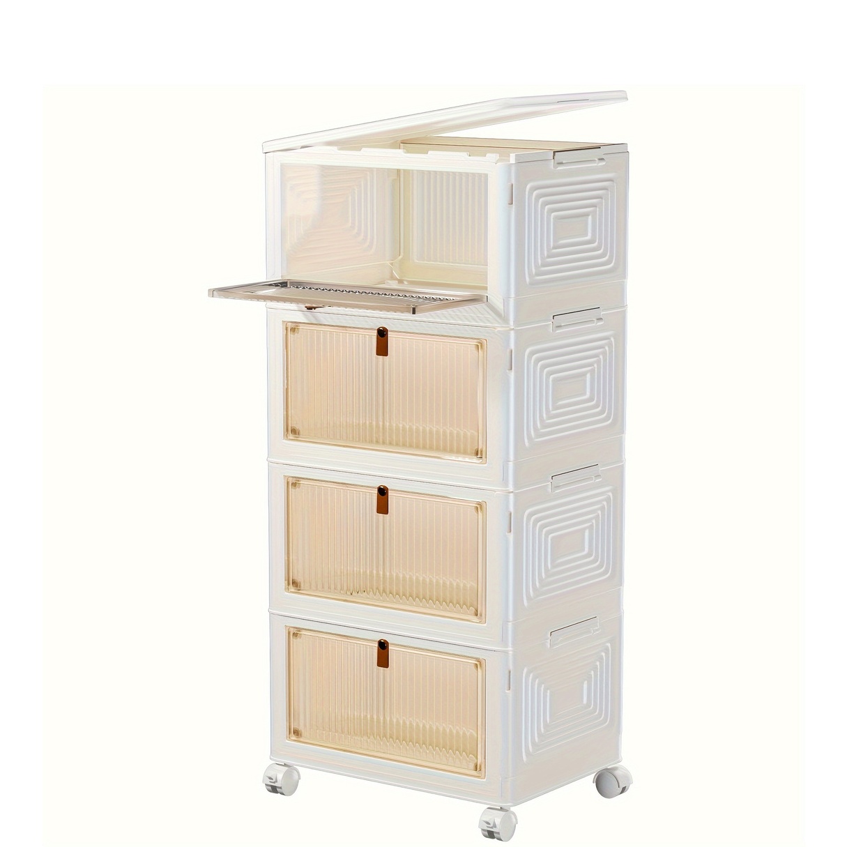 Quantity | 4 layers 1 cover 4 wheels, 3 layers 1 cover 4 wheels, Opaque Door Panel-3 Layers, Opaque Door Panel-4 Layers, Transparent door panel-3 layers, Transparent door panel-4 layers, 4th floor – brown |
