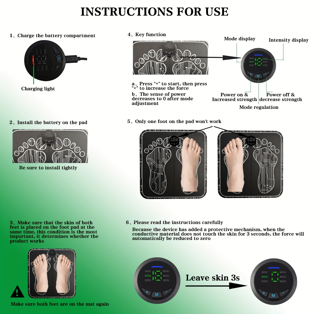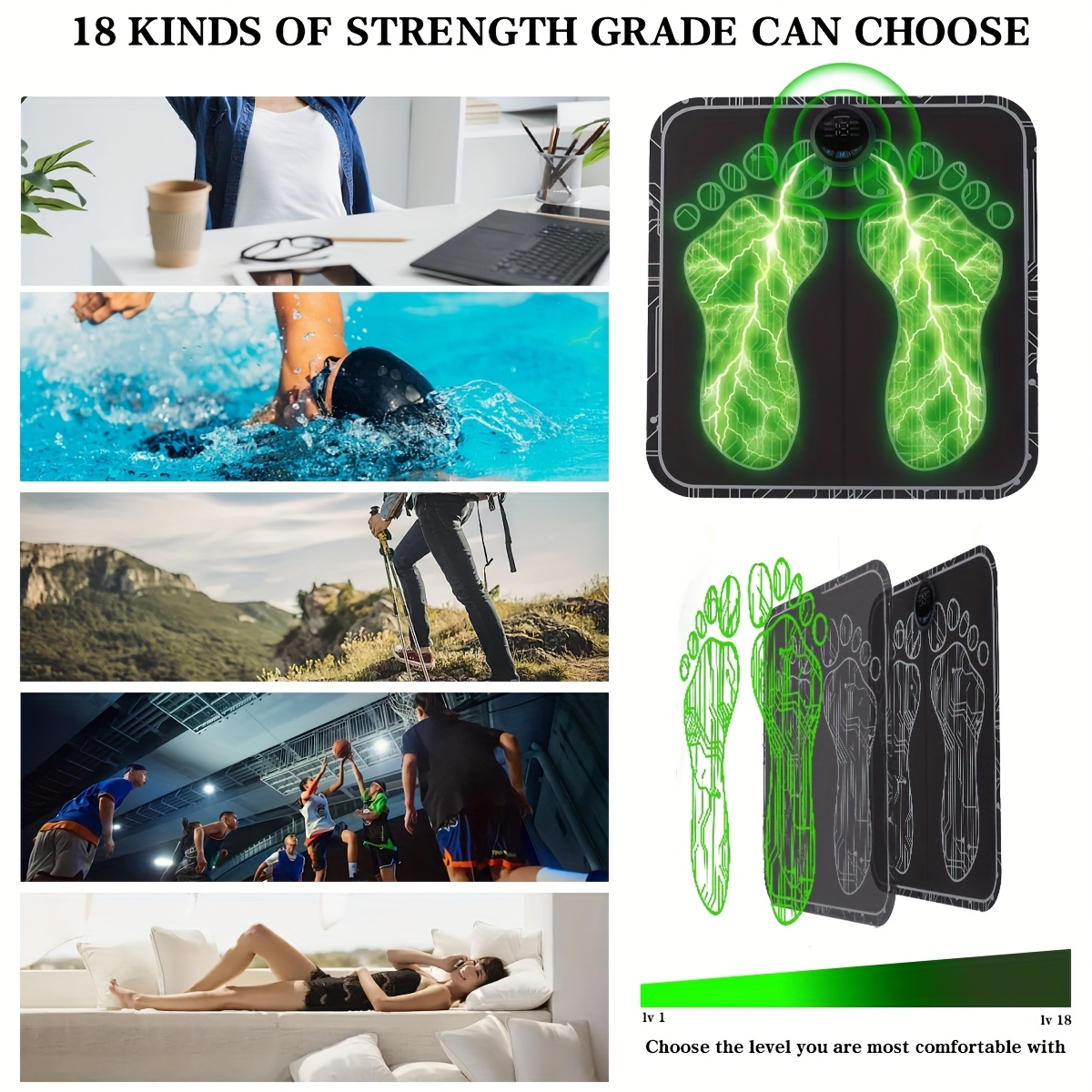 Portable EMS Foot Massage Pad, TENS Therapy Machine, Massager, One Reusable Foot Massage Pad With Multiple Mode Adjustment, Mother'S Day, Father'S Day, – Black
