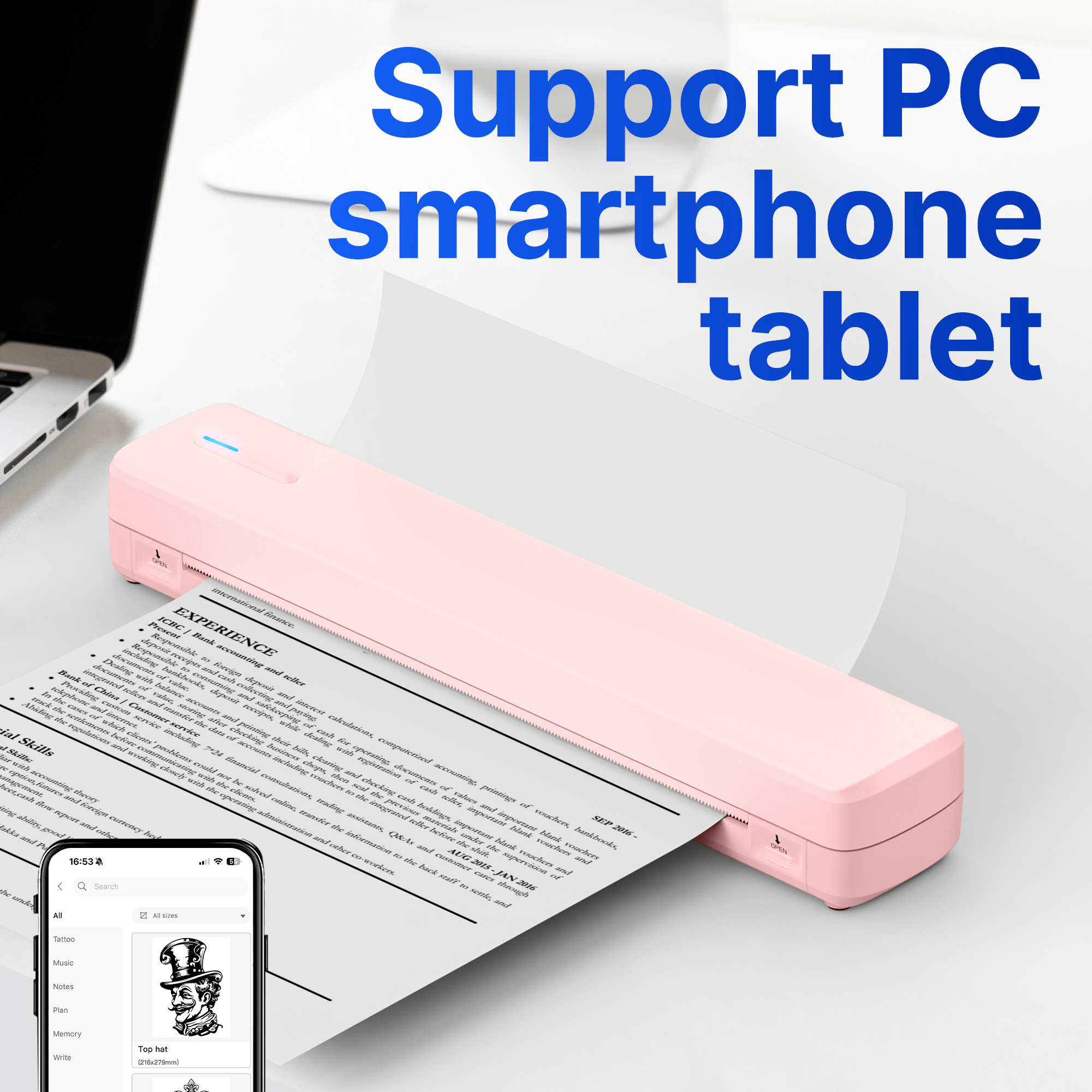 - 【Clear Printing】D810 Portable Printer uses high-definition printing technology, providing you with clear printing. D810 inkless wireless can work for about 49 minutes and print about 200 sheets of thermal paper when fully charged. This tattoo printer compatible with both roll paper,fan-fold paper and tattoo transfer paper, support printing PDF, Word, Images, Web from your phone—whenever, wherever. We recommend using our thermal paper for good printing quality.