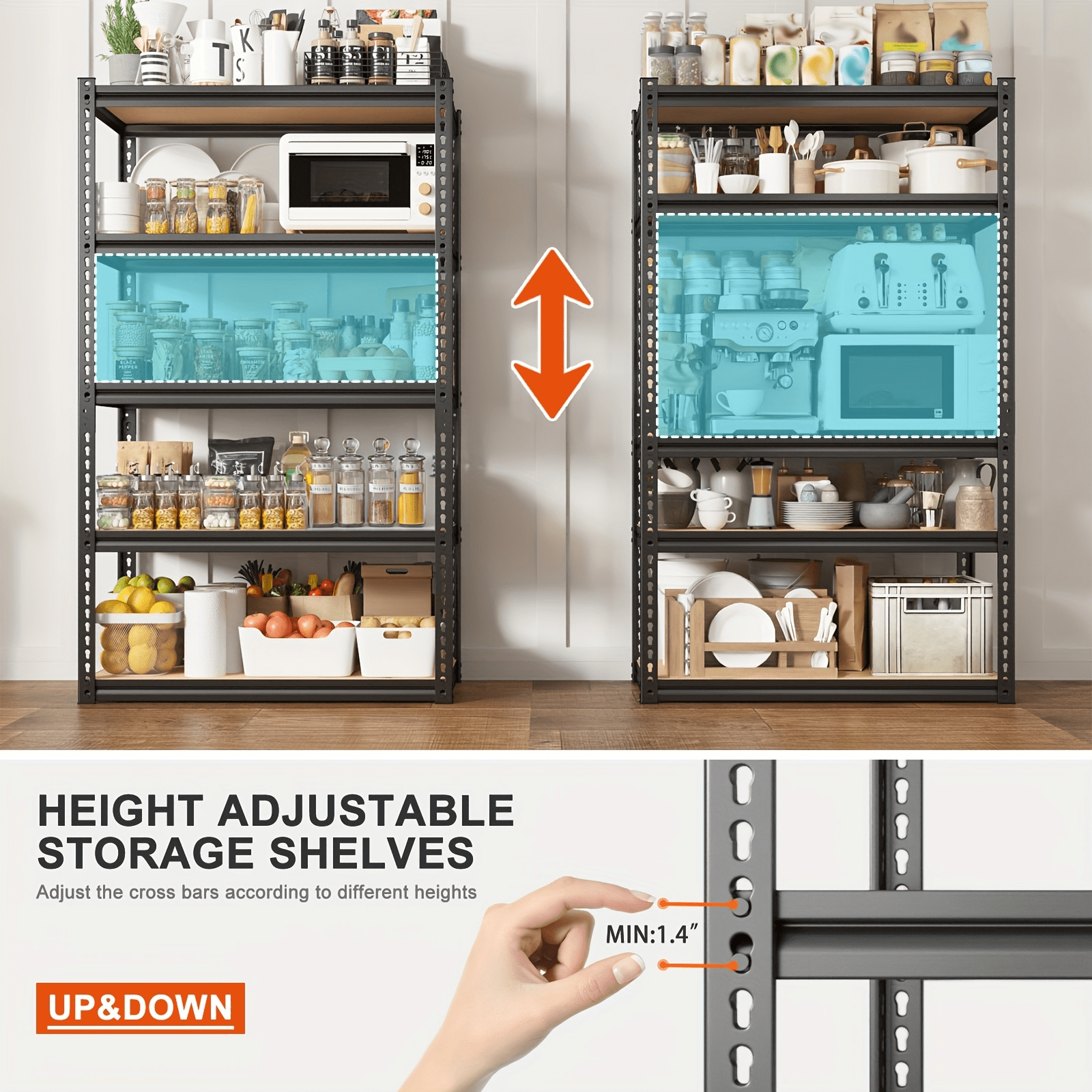 REIBII 3000LBS Heavy Duty Garage Shelving Unit – 72&quote; H Adjustable 5-Tier Metal Storage Shelves, 600LB Capacity Per Tier, Easy 10-Min Assembly with Mallet & Gloves, Industrial Floor-Standing Rack for Garage, Basement, Pantry, Warehouse, Commercial Use, She