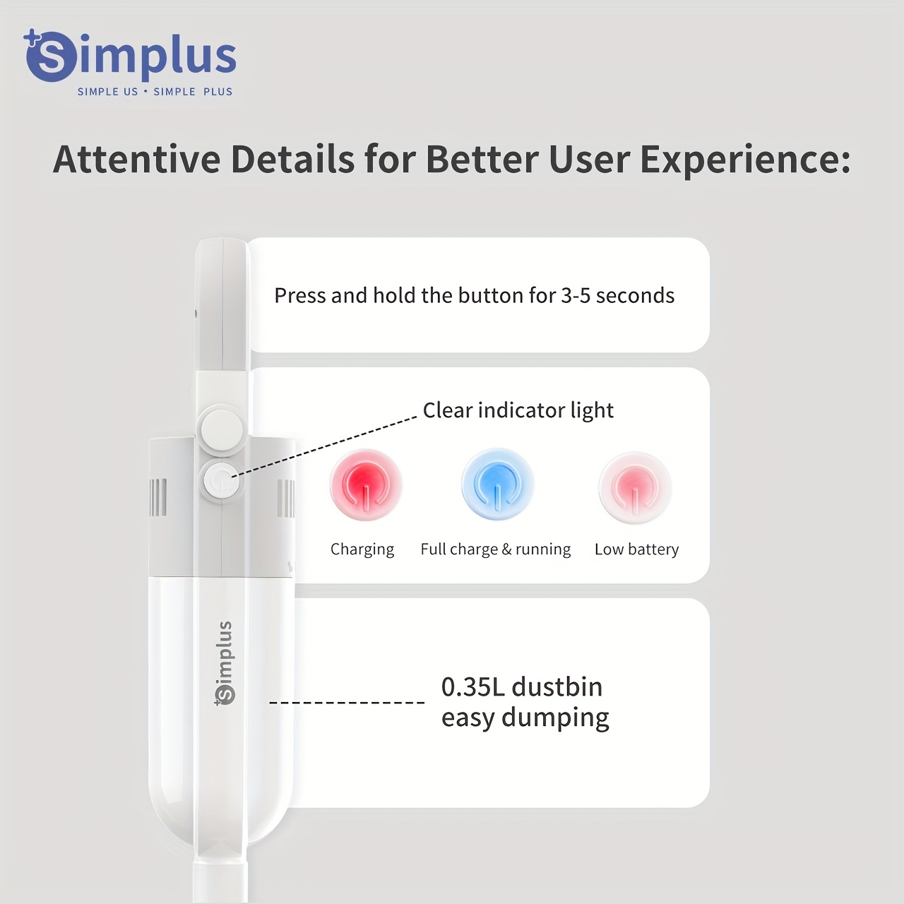 One of the most common points of failure for traditional vacuums is the entanglement of fibers around the brush roll. The Simplus model solves this with integrated anti-hair wrap technology. The brush head is designed to actively disentangle hair and long fibers as it cleans, directing them straight into the dust canister and preventing mechanical jams. Furthermore, the motor is housed in sound-dampening materials to ensure low noise operation. You can maintain your home at any time of day without disrupting the peace of your household or startling pets.