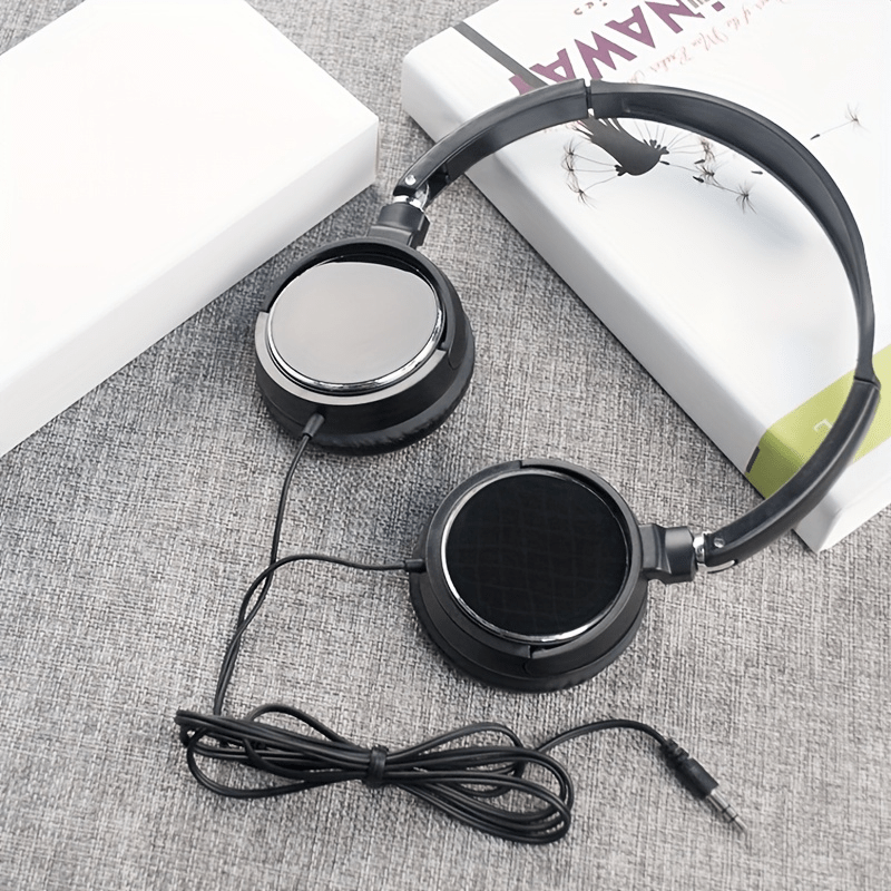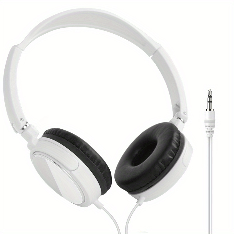 [Sleek Headphones] 1pc Sleek White & Black Over-Ear Wired Headphones | Comfort Padded Ear Cups, 3.5mm Jack, Tangle-Free Cable – Ideal for Gaming, Music Listening & Video Watching