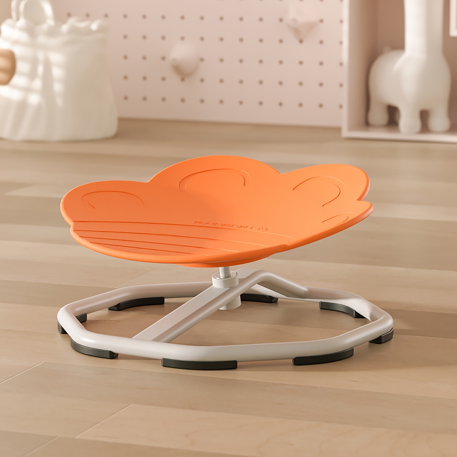 The paw-shaped seat is molded from high-density polyethylene (HDPE), a material selected for its exceptional durability, impact resistance, and non-toxic composition. HDPE is resistant to cracking, chipping, and fading, ensuring the chair maintains its structural integrity and visual appeal through years of use. The paw design features rounded contours without sharp edges or pinch points, prioritizing safety during active use. The seat surface is slightly textured to provide grip without abrasion, preventing slippage during rotation while remaining comfortable for extended seated sessions.