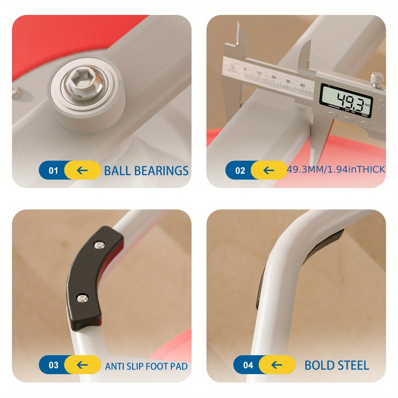 When used outdoors, the powder-coated steel base resists moisture and UV exposure, while the HDPE seat is unaffected by sunlight or temperature variations. The non-slip rubber grips perform reliably on both indoor and outdoor surfaces.