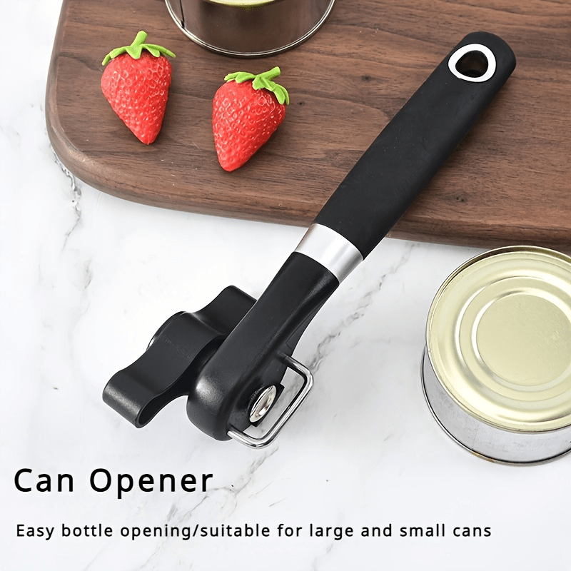 [Stainless Steel Can Opener] 1pc TLDOD Stainless Steel Manual Can Opener – Quick & Easy Side Opening Tool with Black Plastic Handle – Effortless Kitchen Essential for Home Use – Sleek Modern Design