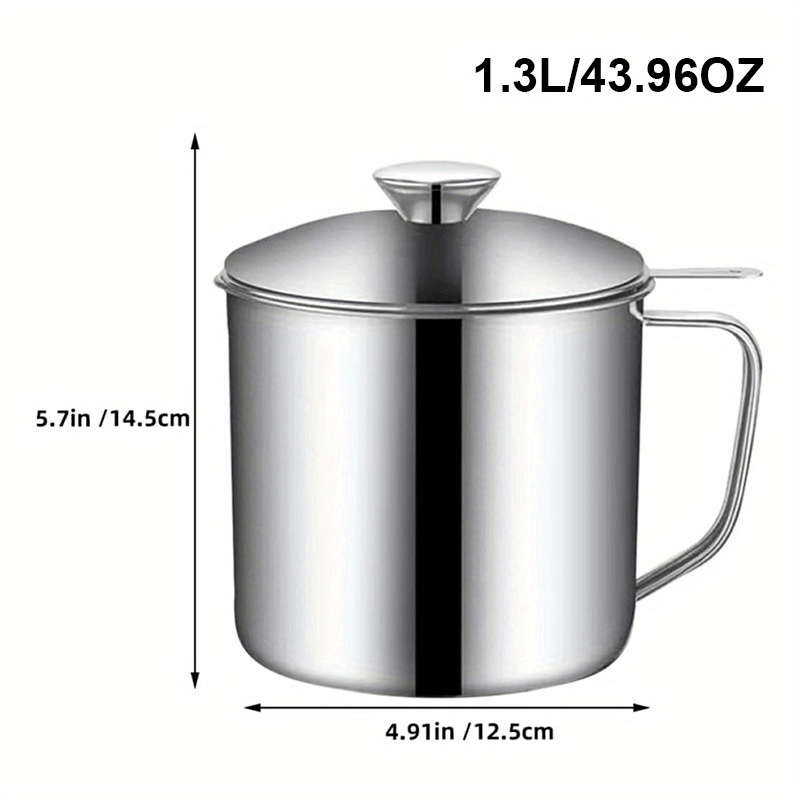 [Stainless Steel Grease Keeper] Stainless Steel Grease Keeper with Strainer | 43.96oz Oil Storage Pot with Lid, Safe Pouring Handle for Cooking Oil Filtration and Storage – Kitchen Gadgets, Accessories, Christmas Gifts