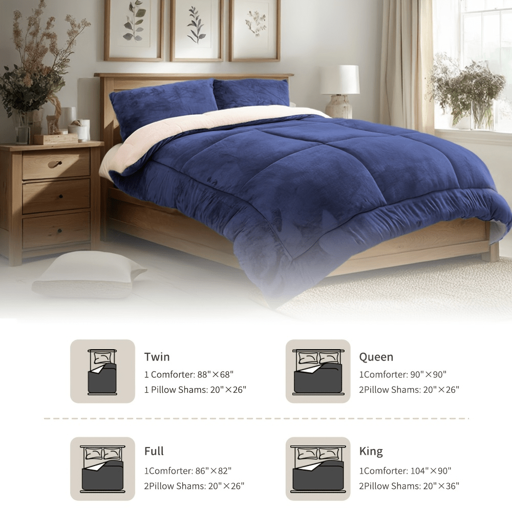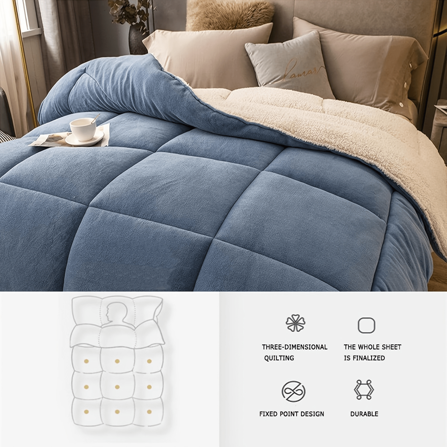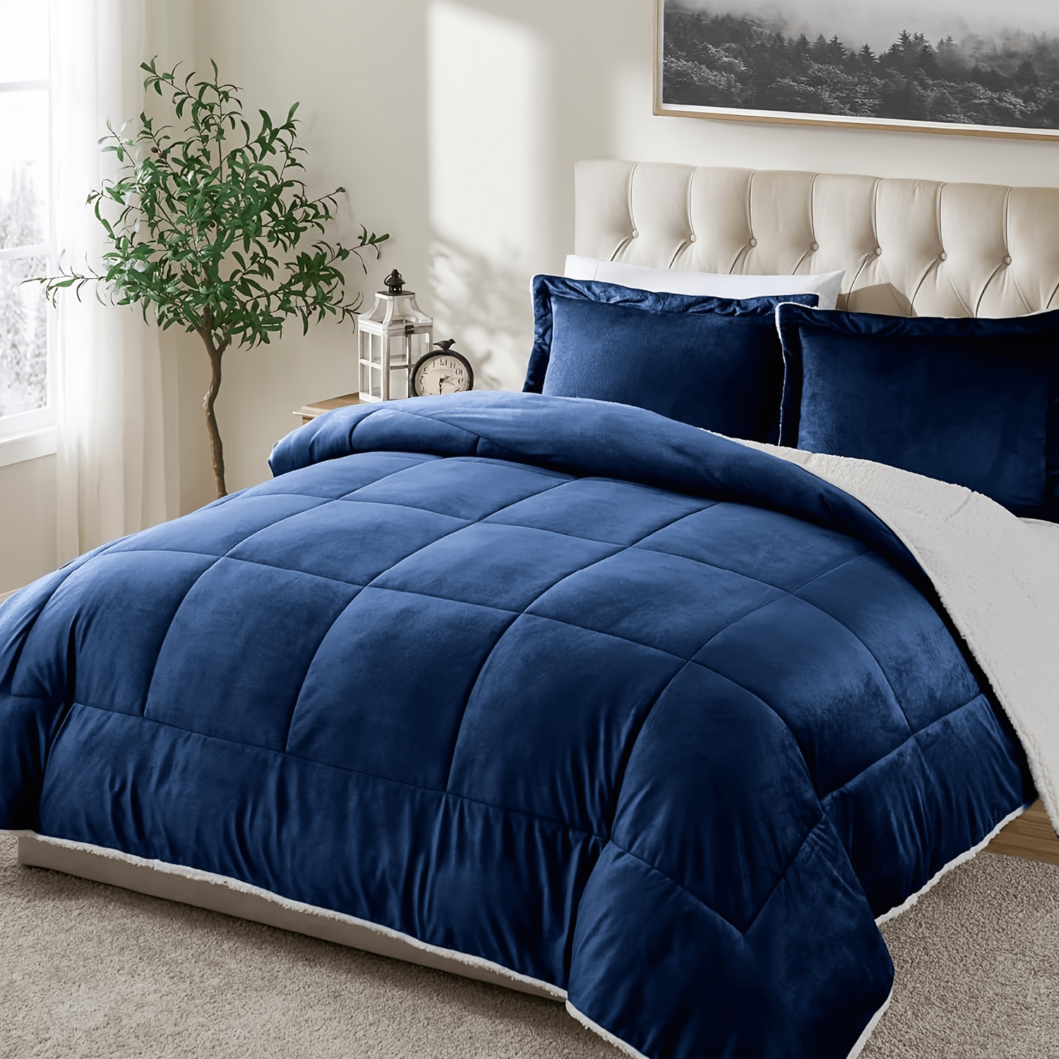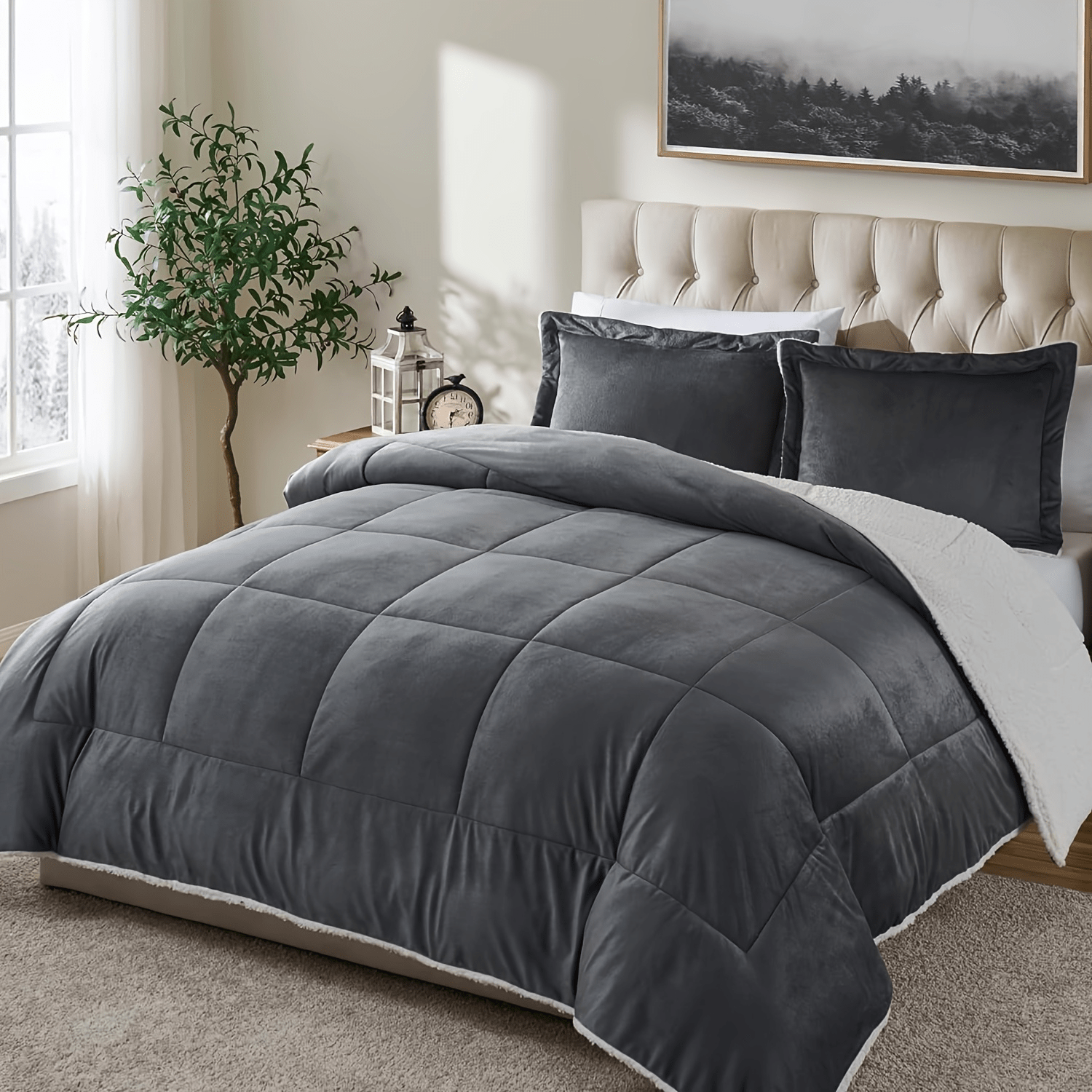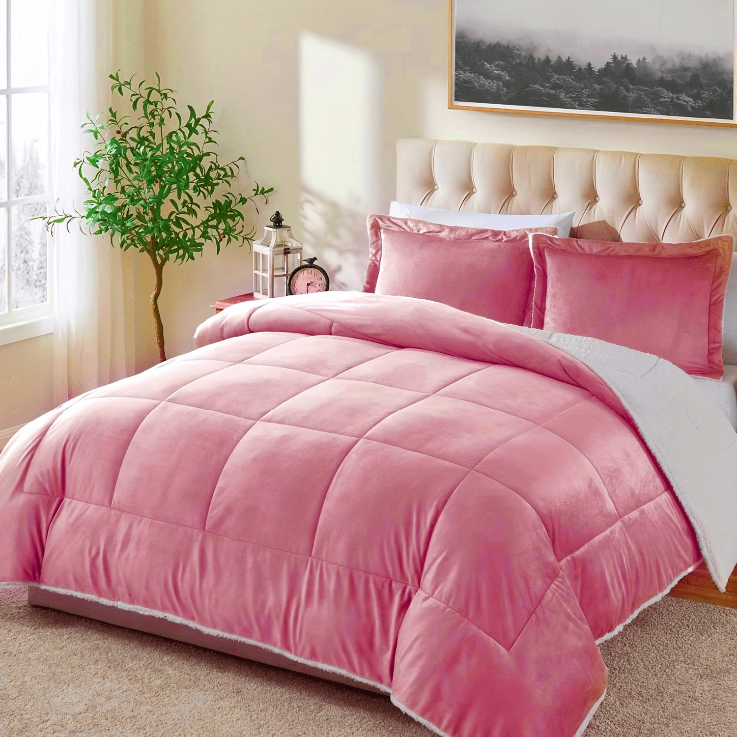 Super Soft 3-Piece Comforter Set – Thickened All Season Quilting, Square Stitch Solid Color, Machine Washable – Breathable for Fall Winter with 1 Quilt and 1 or 2 Pillow Cushions