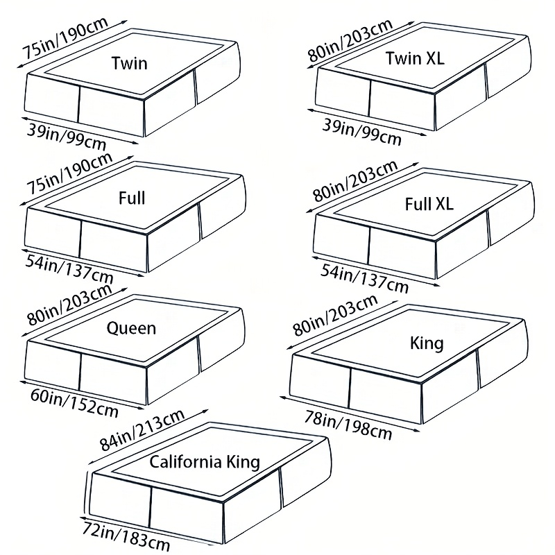 Double:99*190, California King:183*213, King:198*203, Twin XL:99*203, Queen:152*203