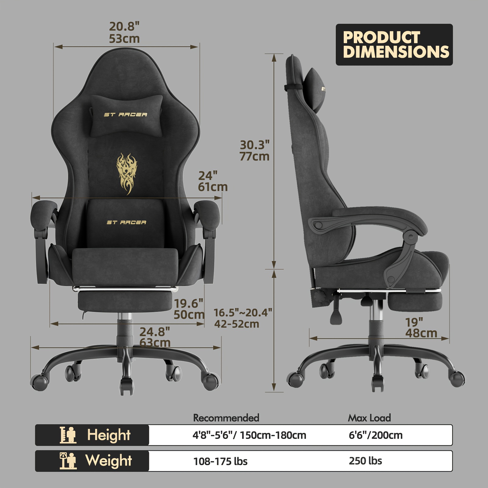 Simple and Stylish Gaming Chair, crafted from velvet fabric with fire embroidery process, offers a sophisticated look while providing superior comfort.