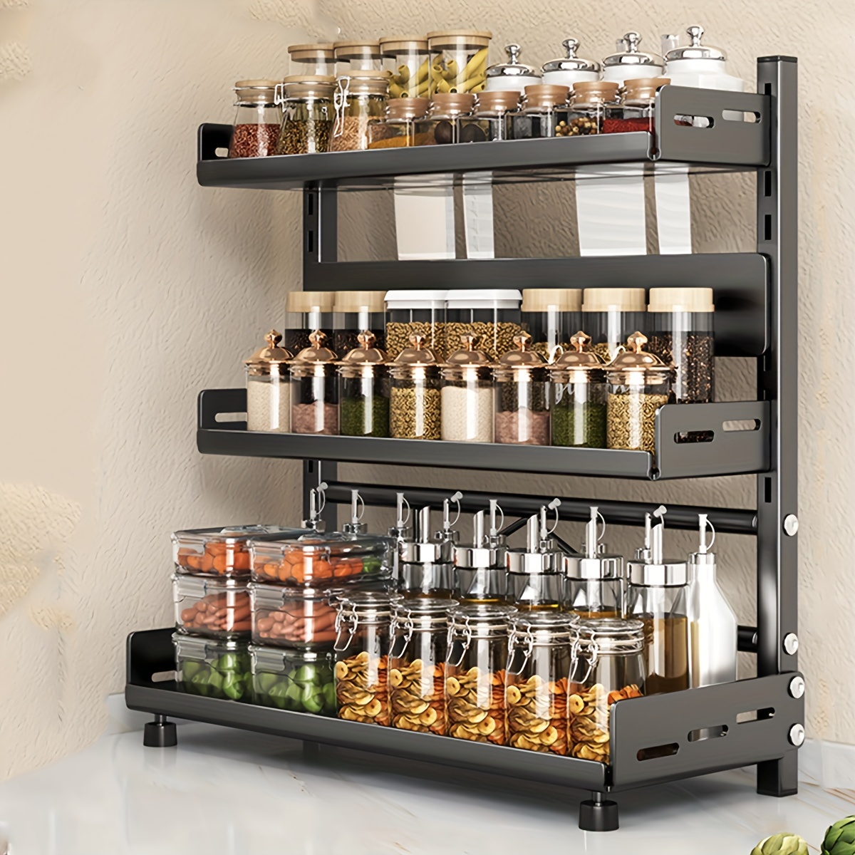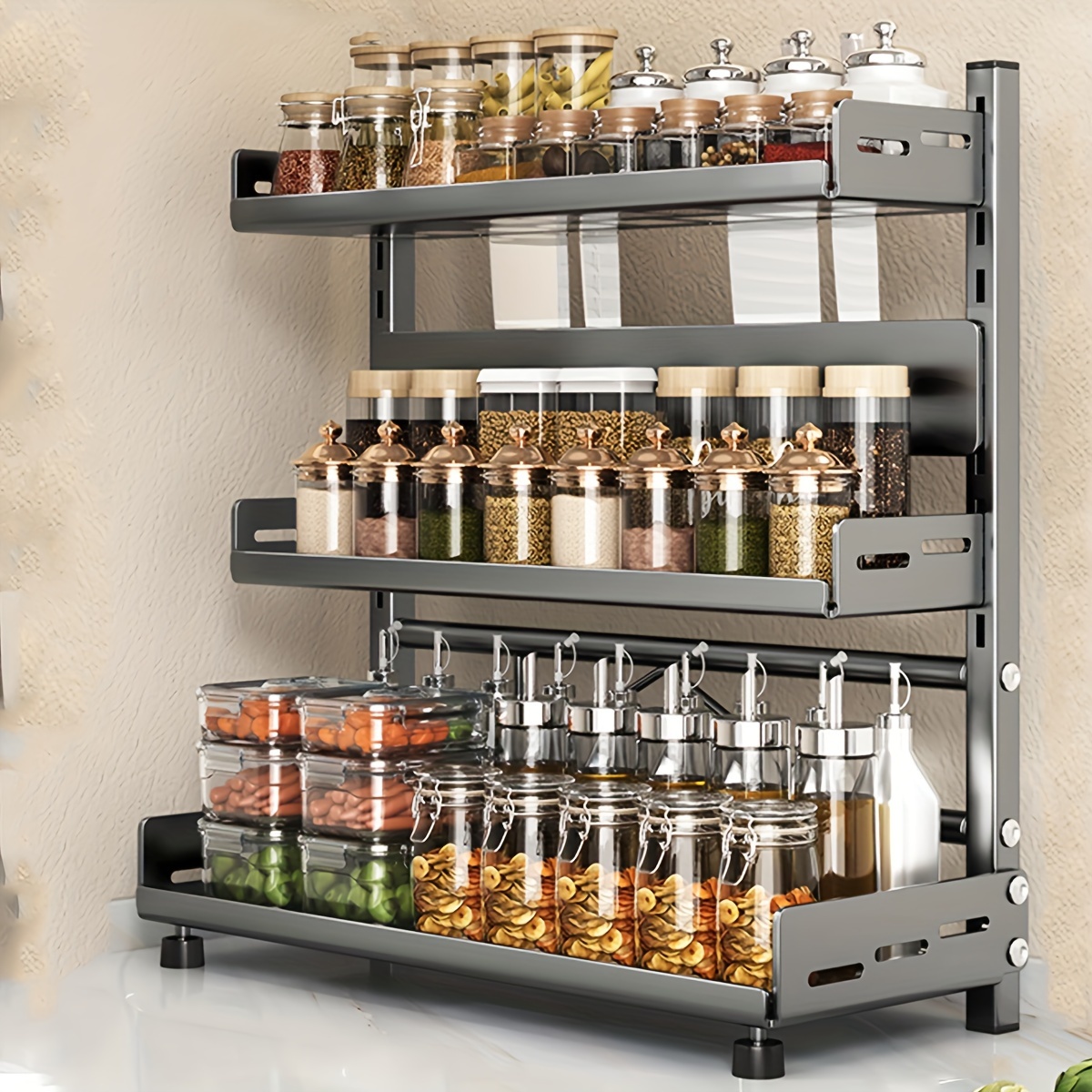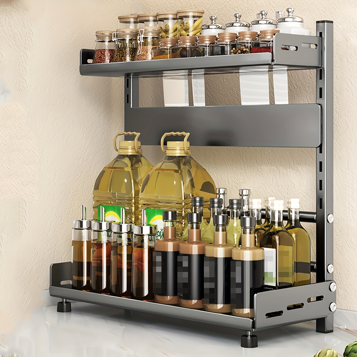 Industrial-Grade Carbon Steel Construction 2/3-Tier Metal Spice Rack