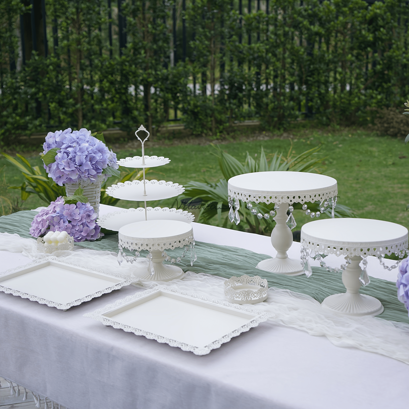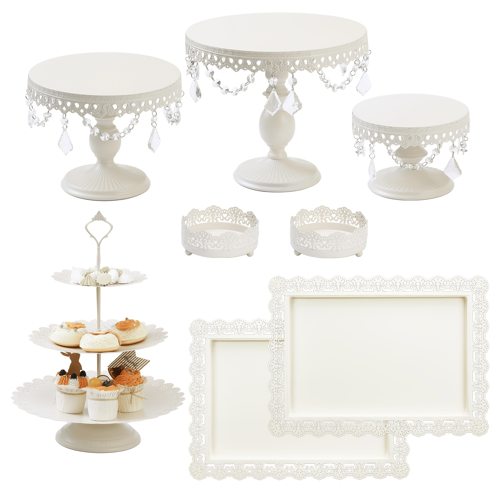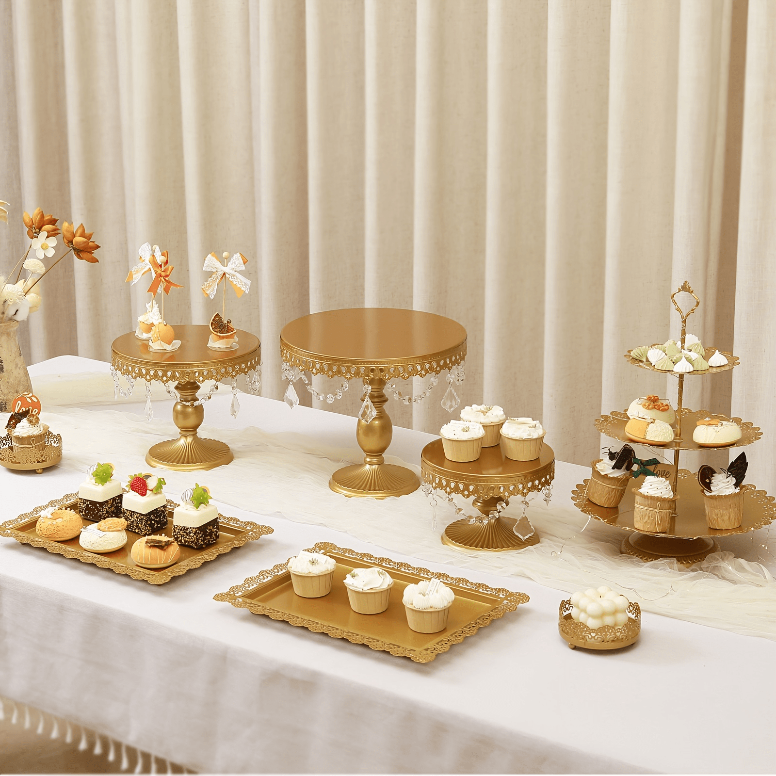 VILAVITA Set of 8pcs Dessert Table Display Set/ Party Table Centerpiece, Cake Stand Romantic Pendant Decoration Gold Round Metal Tray 2-Tier/3-Tier CupCake Tower for Displaying Table for Birthday Party Baby Shower Wedding Decor Fit 4&quote;, 6&quote;, 8&quote; 10&quote;