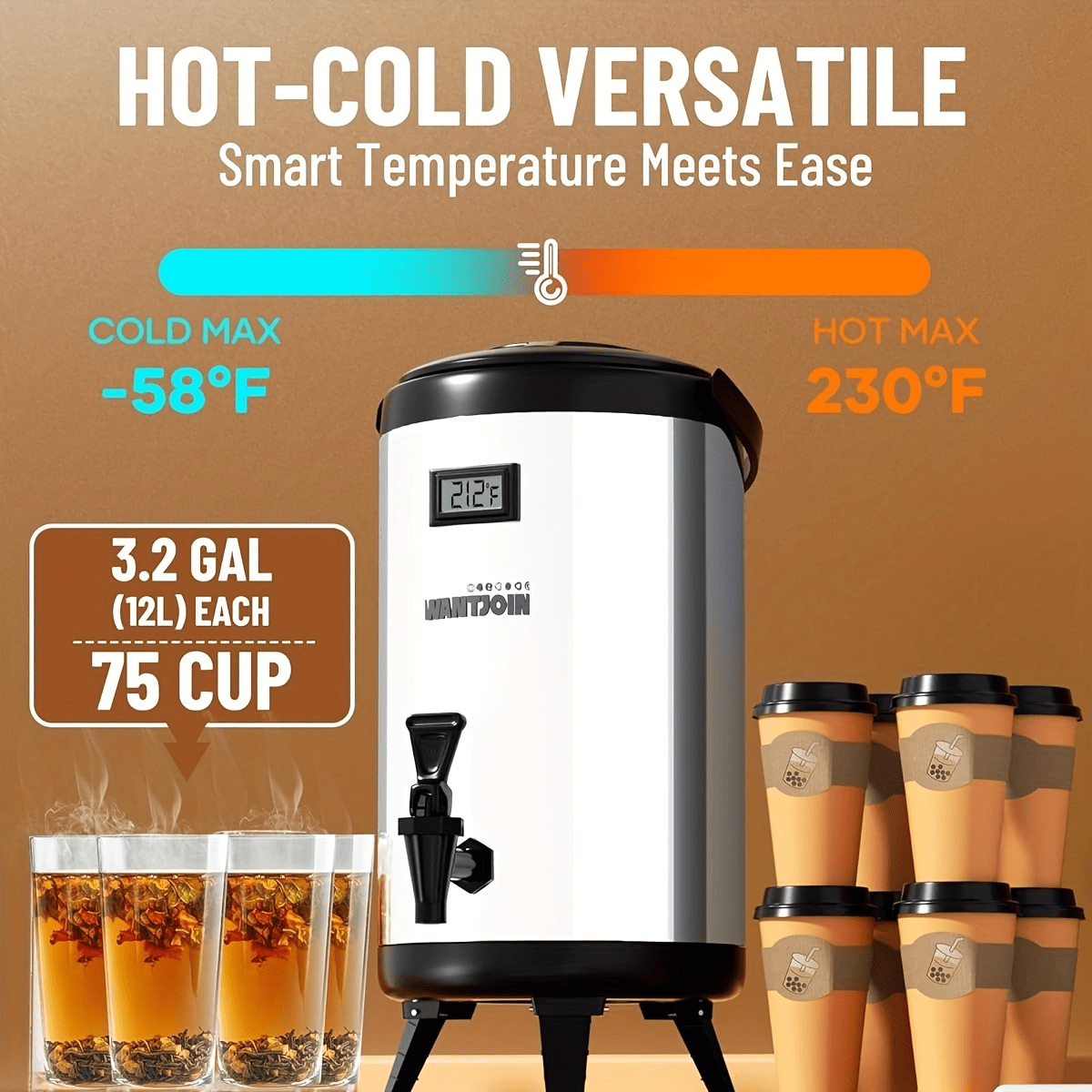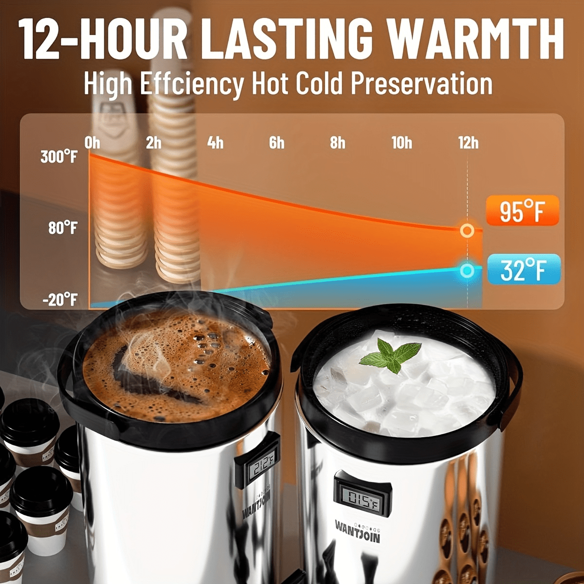 WantJoin 2-pack Insulated Beverage Dispenser-Thermal Hot And Cold Beverage Dispenser Tea Dispenser Stainless Steel 12L/3.2Gal Hot Drink Dispenser With Spigot For Hot Tea&Coffee, Cold Milk, Juice Black