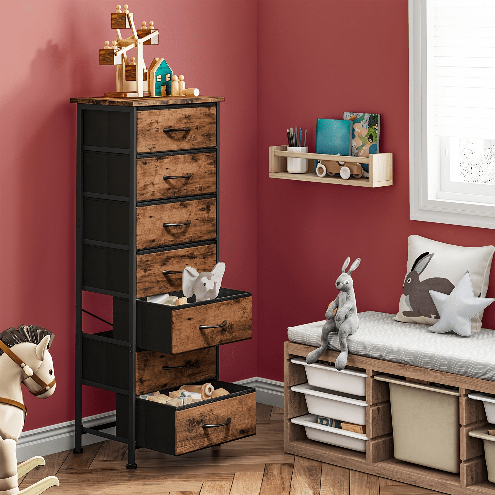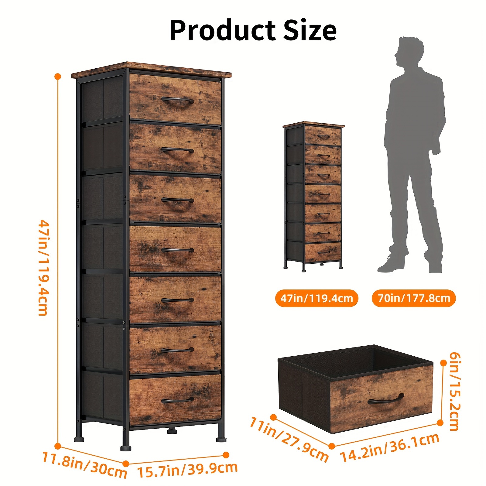 WHONLINE 1pc Tall Dresser, 41/47in Storage Dresser Organizer With 6/7 Fabric Drawers, Nightstand Furniture In Closet, Entryway, Hallway, Rustic Grain Print, Mounted Closet Systems, Clothing & Closet Storage, For School And Dormitory Storage, Storage Drawe
