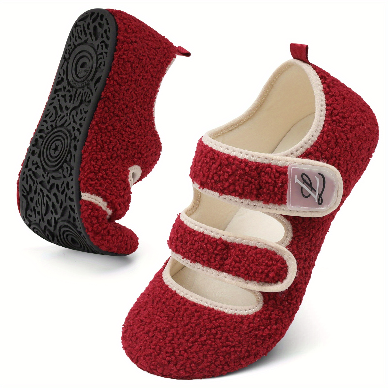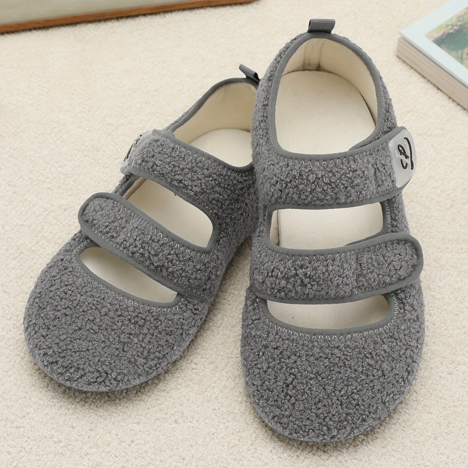 Women’S Plush Flat Shoes | Indoor & Outdoor with Rubber Sole, Hook-and-loop Fastener, Solid Color Fabric Upper and Insole, Non-slip, Low Top