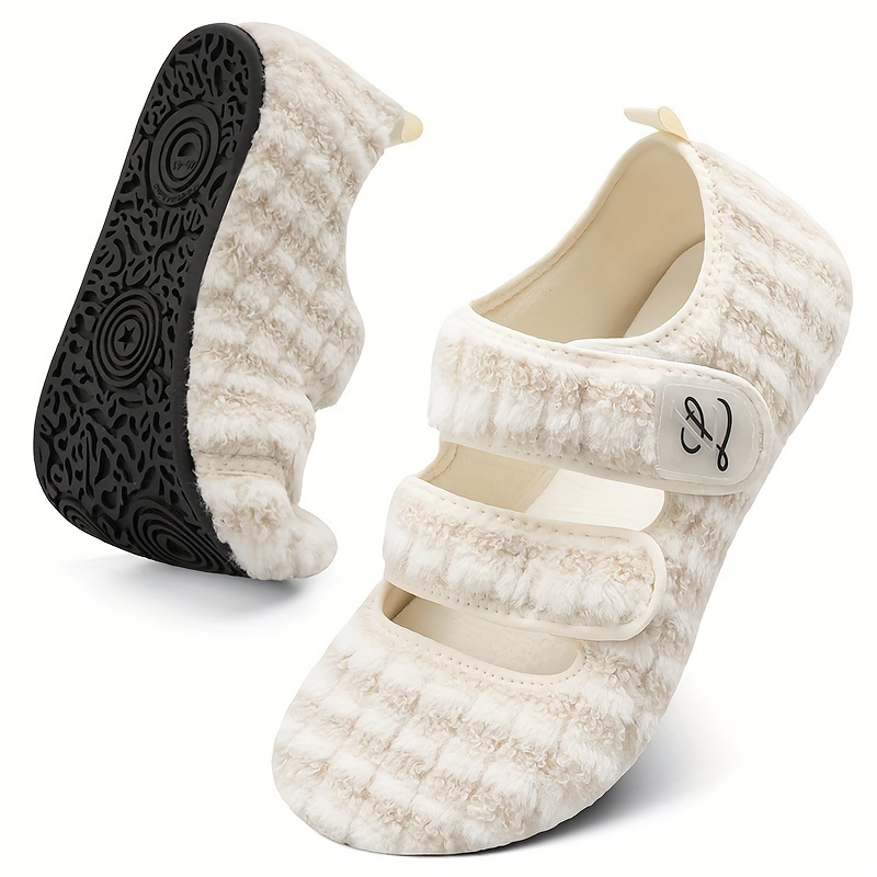 • Precision “Hook-and-loop Fastener” Logic: The Women’S Plush Flat Shoes are engineered with a “Quick-Release” closure system. This “Mechanical-Alignment” ensures a “Customized-Compression-Fit,” effectively eliminating the “Heel-Slippage” friction common in traditional slip-on flats and providing a professional-grade “Stability-Profile.”