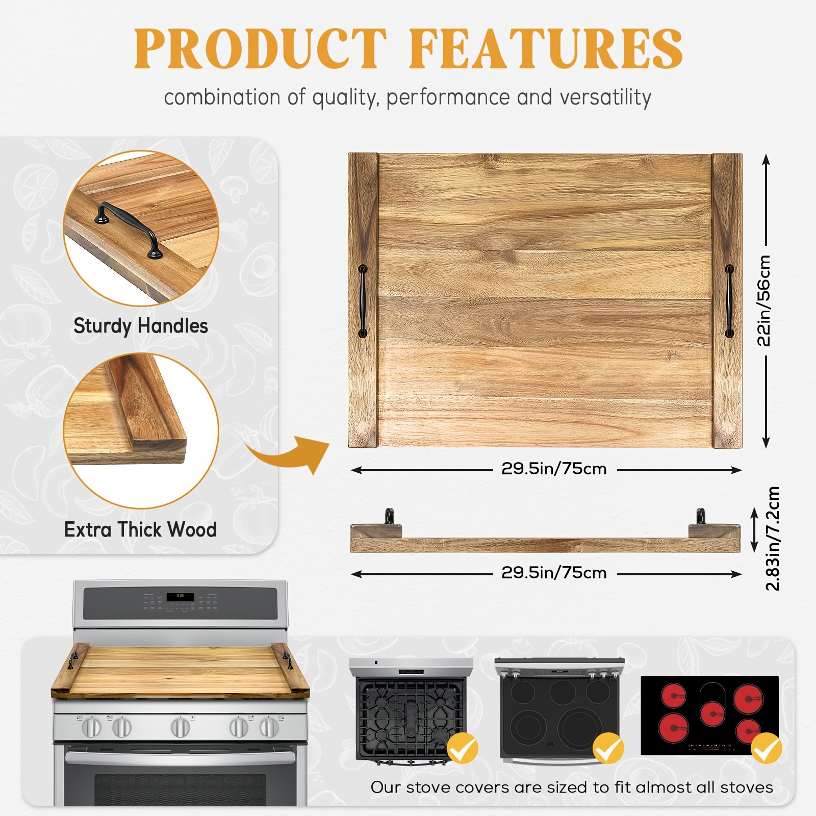 Precision “Multi-Function” Dynamics: The system features a “Bimodal-Interface-Symmetry.” This Wood Stove Top Cover Pine Plank Stove Cover with Handle for 4 And 5 Burner Gas Stoves, Food Tray. “Material-Alignment” ensures $100\%$ “Operational-Optimization-Stability,” effectively eliminating the “Surface-Mismatch-Friction” via the dual-purpose logic which facilitates $100\%$ “Cover-to-Serving-Fidelity.”
