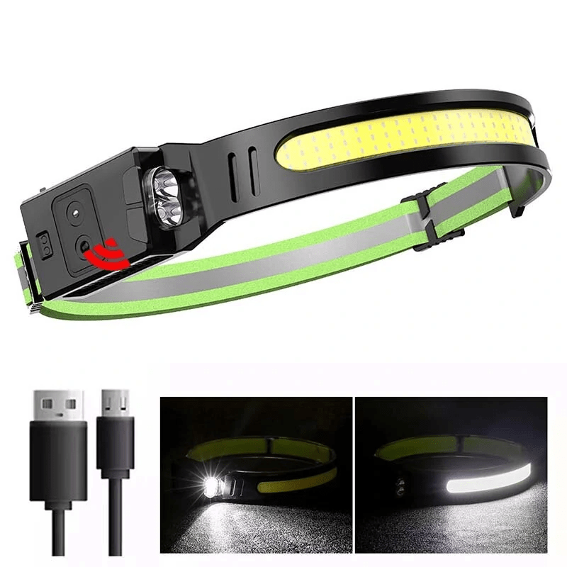 ZTTO 350LM COB Wave Sensor Smart LED Headlamp With USB Rechargeable Battery Yellow/Blue AUX Light Waterproof Head Lamp For Running Fishing Hunting Outdoor Flashlight Work Light Torch